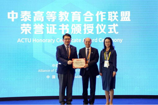 在中泰高等教育合作联盟首任中方联席理事长荣誉证书颁发仪式上,颜晓红教授作为中泰高等教育合作联盟首任中方联席理事长获颁联盟荣誉理事长证书。