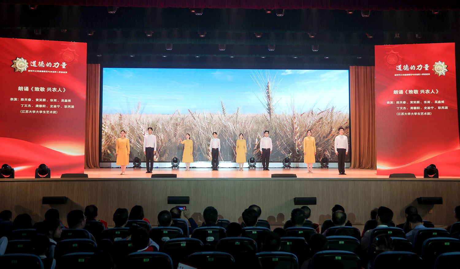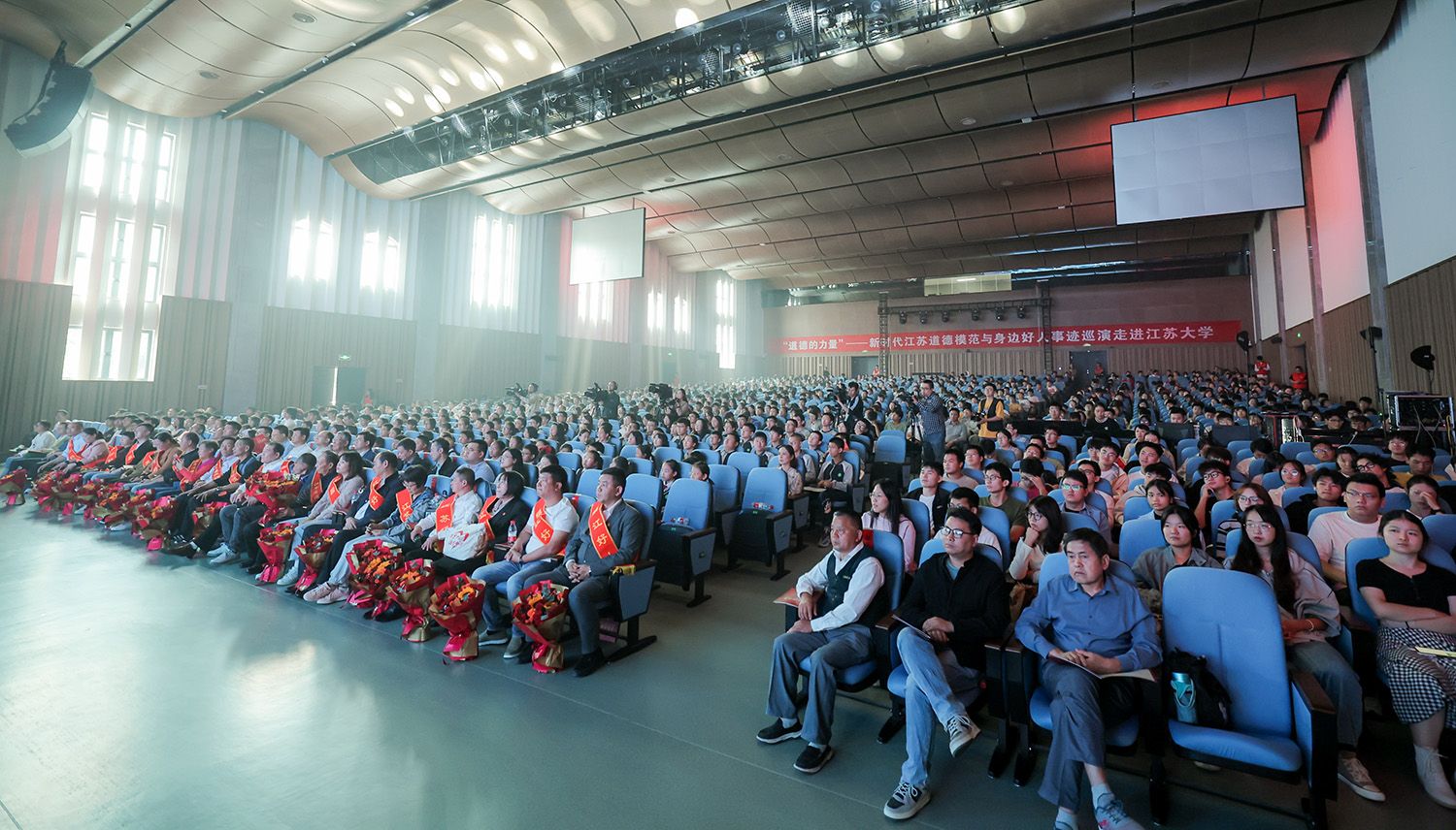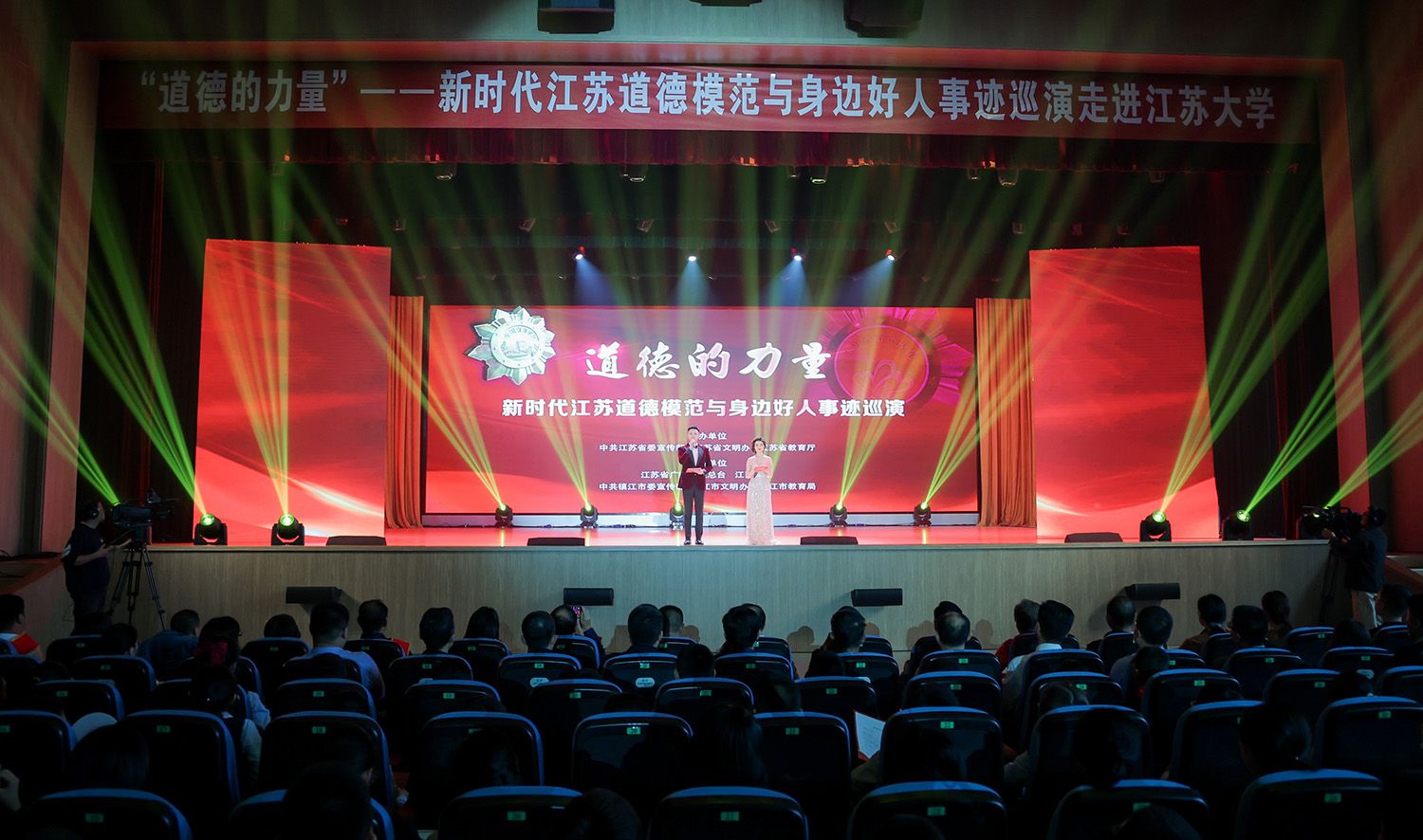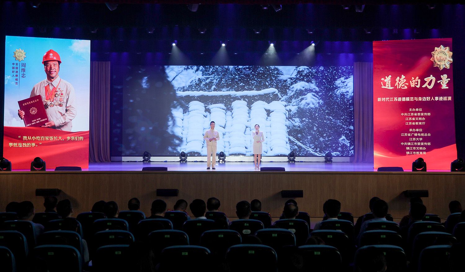 10月25日,由中共江苏省委宣传部、江苏省文明办、江苏省教育厅主办,江苏省广播电视总台、开云手机站在线登入、中共镇江市委宣传部、镇江市文明办、镇江市教育局承办的“道德的力量”——新时代江苏道德模范与身边好人事迹高校巡演走进我校。