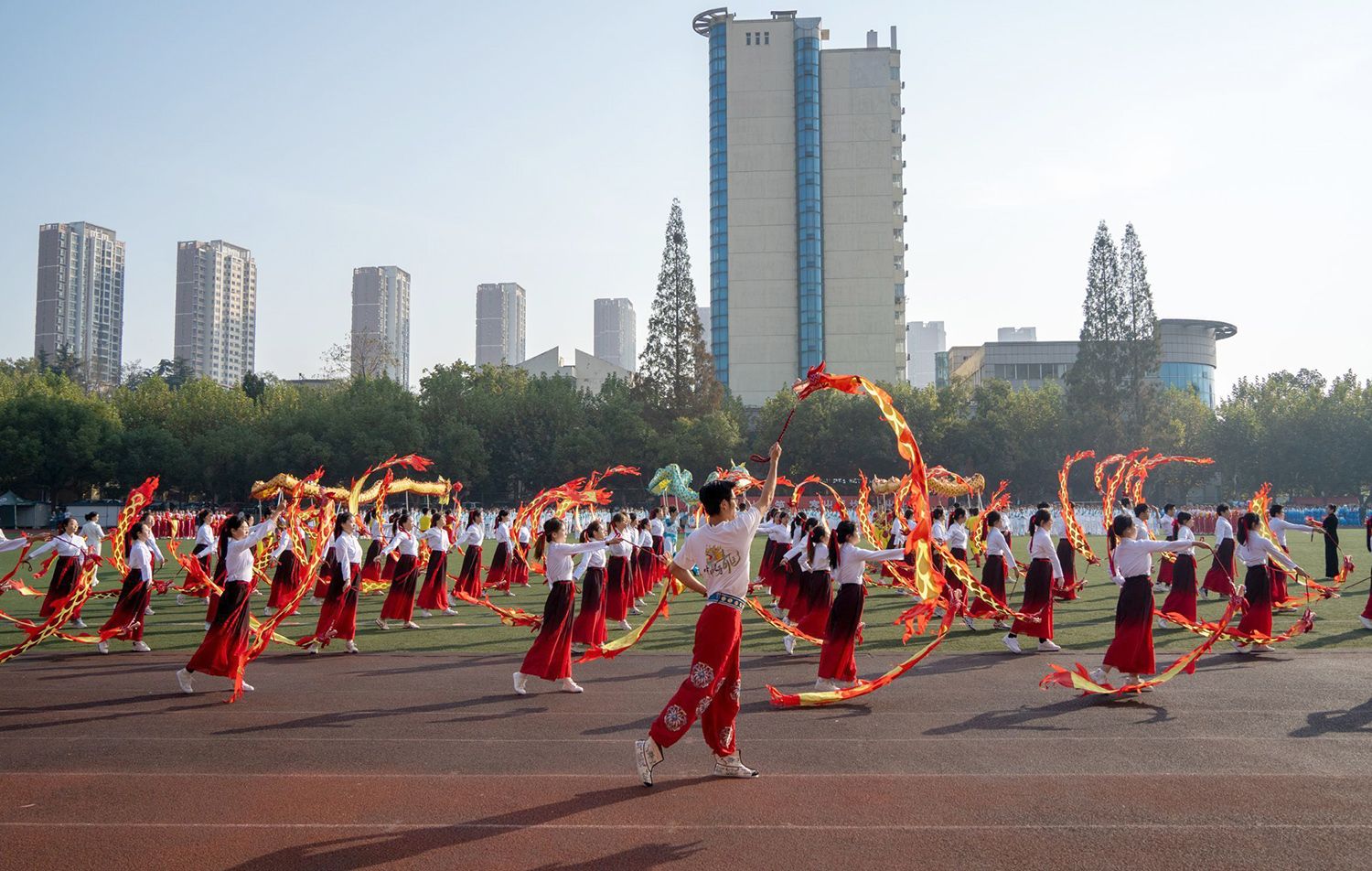 张济建宣布开云手机站在线登入第二十二届运动会开幕。开幕式上,学生进行了舞龙舞狮、排舞表演,教职工进行了太极扇等表演。