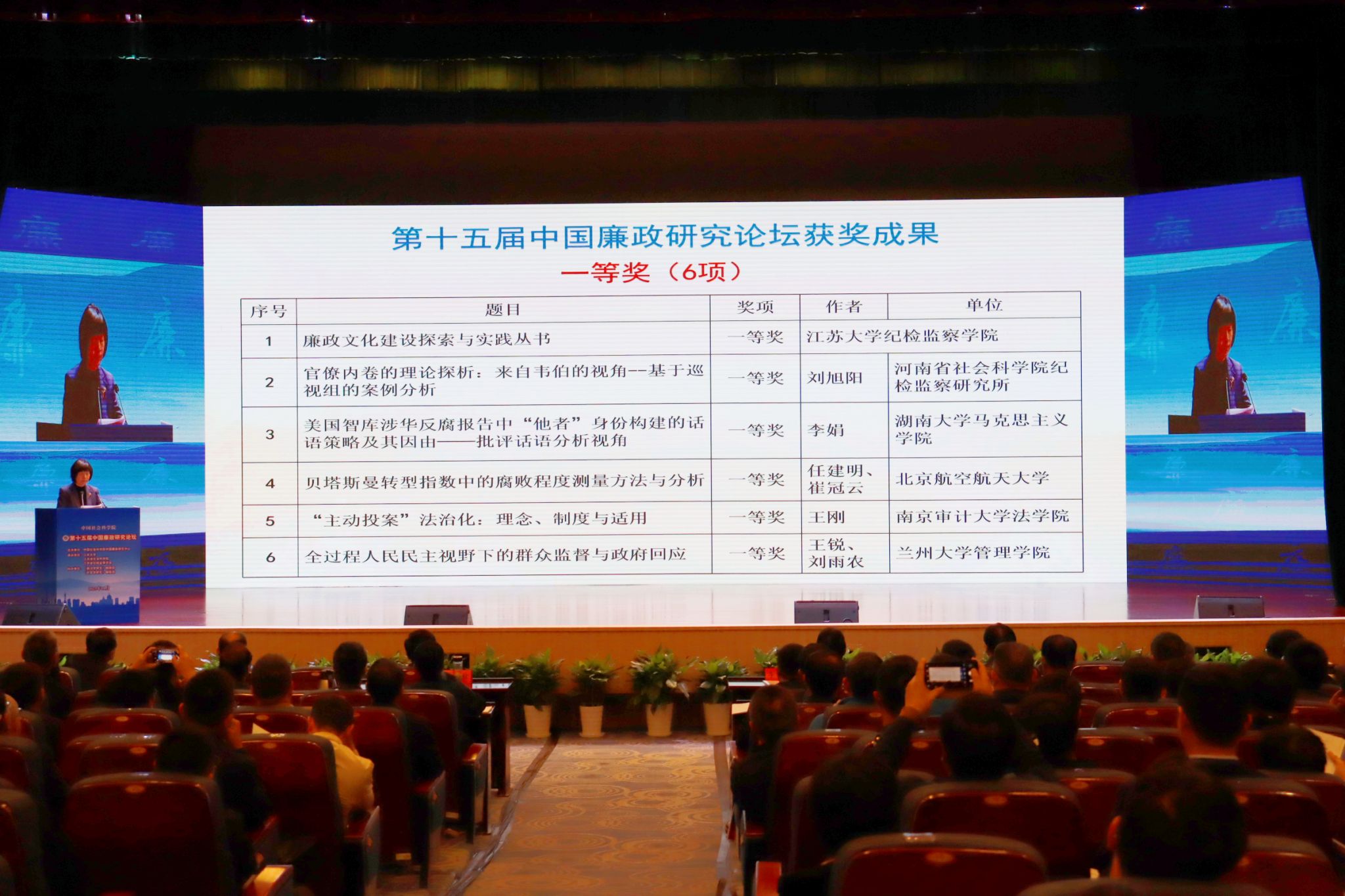 围绕“国家治理现代化与纪检监察学学科发展”主题,本次论坛共收集研究成果355项,评选出39项优秀成果。中国社会科学院直属机关党委常务副书记、中国廉政研究中心常务理事王晓霞宣布论坛获奖名单。开云手机站在线登入纪检监察学院《廉政文化建设探索与实践丛书》等6项优秀成果获第十五届中国廉政研究论坛优秀成果一等奖。