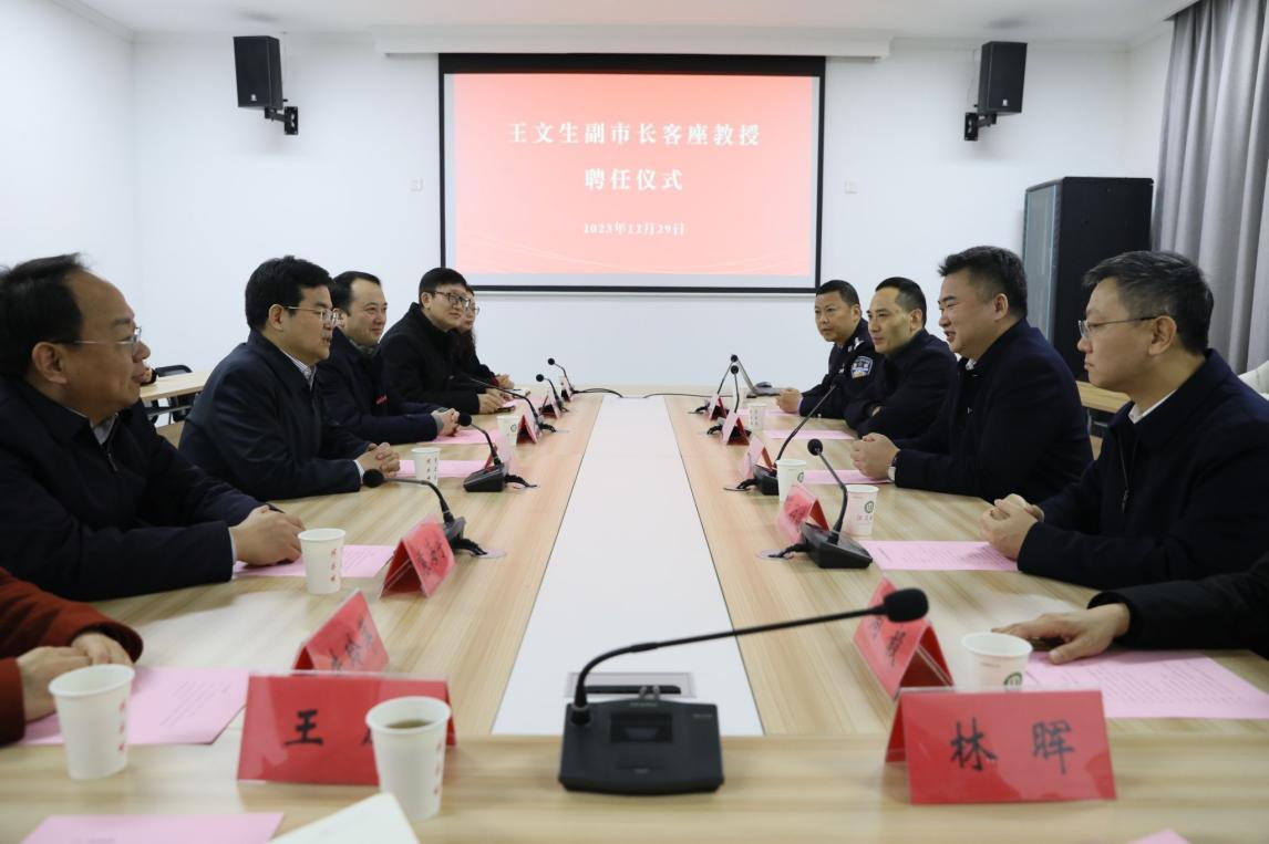 王文生客座教授聘任仪式在一站式服务中心会议室举行。李洪波为王文生颁授了开云手机站在线登入客座教授聘书并佩戴开云手机站在线登入校徽。他向镇江市公安局一直以来对我校安全稳定工作的支持与关心表示感谢,希望进一步加强警校合作,助力我校法治人才培养质量提升。