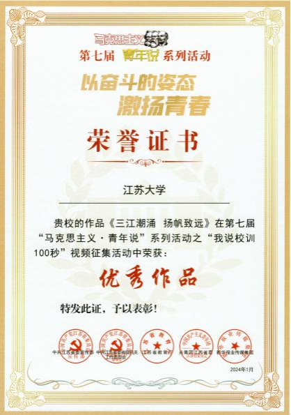 近日,第七届“马克思主义·青年说”系列活动获奖结果公布,在“我说校训100秒”视频征集活动中,由我校党委宣传部教师常明、王雪娇,艺术学院学生肖君圆报送的作品《三江潮涌 扬帆致远》从98件作品中脱颖而出,获得优秀作品奖。