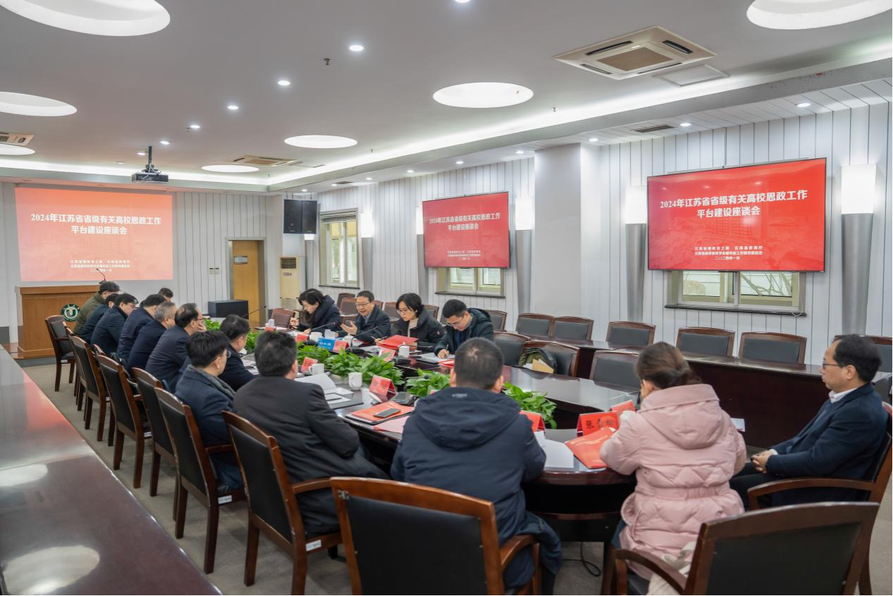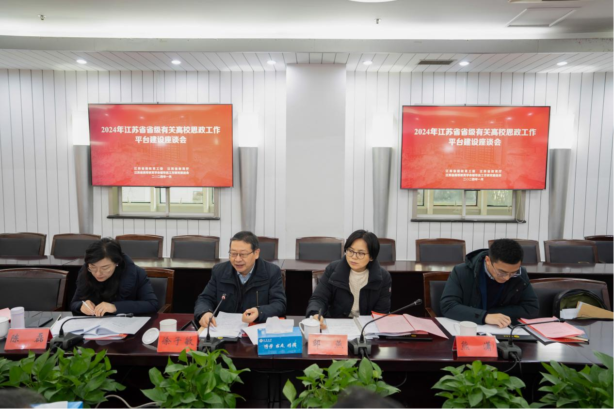 1月25日,2024年江苏省省级有关高校思想政治工作平台建设座谈会在我校举行。省教育厅一级巡视员徐子敏,南京工业大学党委常委、副校长刘大卫,苏州大学党委常委、副校长查佐明,南通大学党委常委、副校长吉明明,开云手机站在线登入党委常委、副校长任旭东,南京师范大学党委常委、宣传部部长宋喆,省教育厅社政处处长邹燕、一级主任科员陈磊、挂职干部熊潇,以及省网络思政中心(易班中心)、8个省级高校辅导员培训与研修基地负责人参加座谈会。