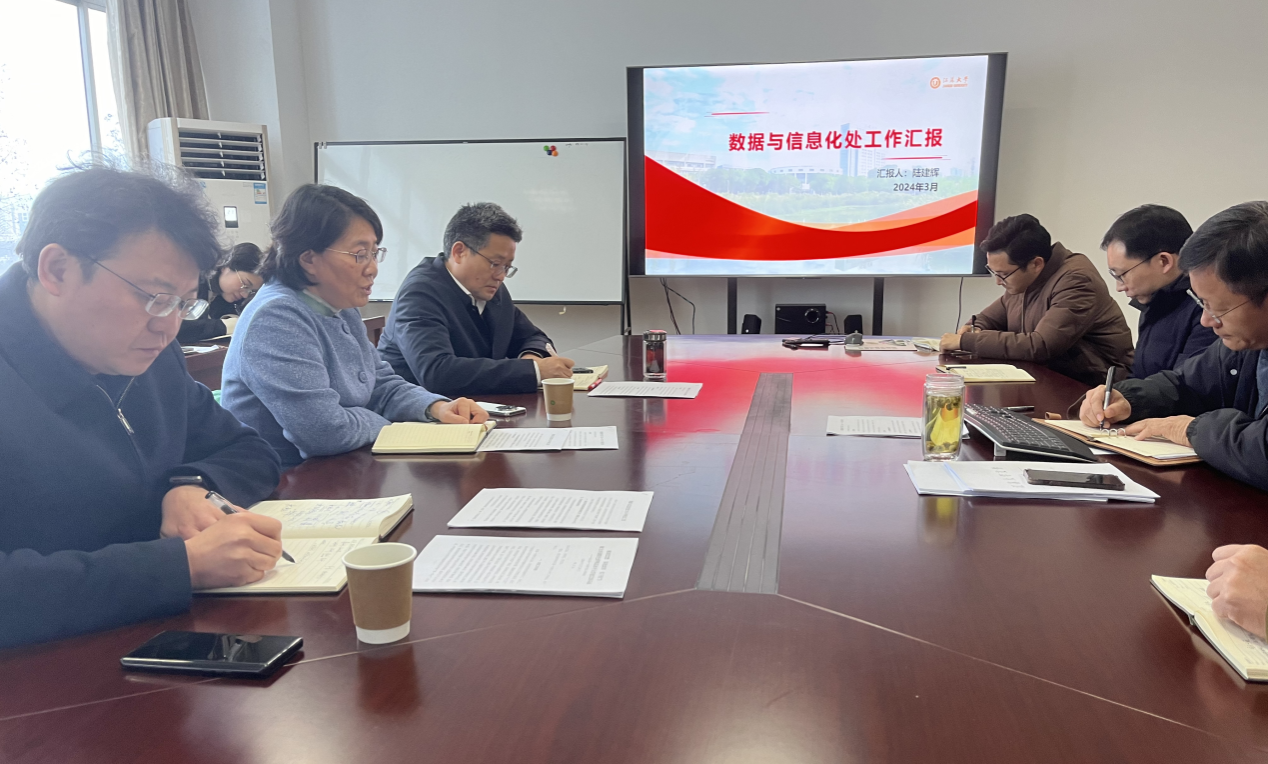 邢卫红听取了数据与信息化处关于学校信息化建设情况的汇报,详细了解了学校在数据管理、信息系统建设、网络安全保障等方面的工作进展,以及面临的困难挑战。