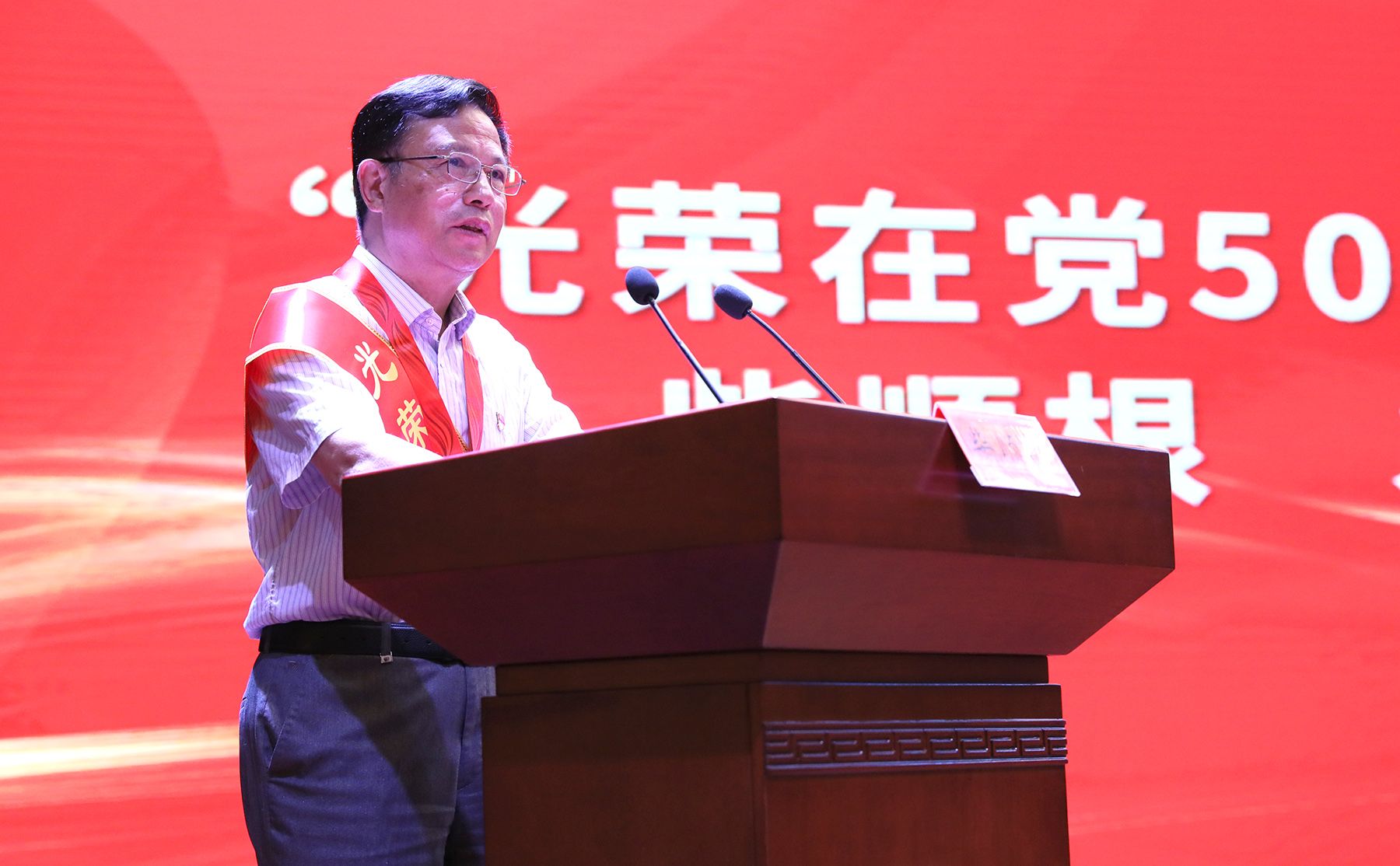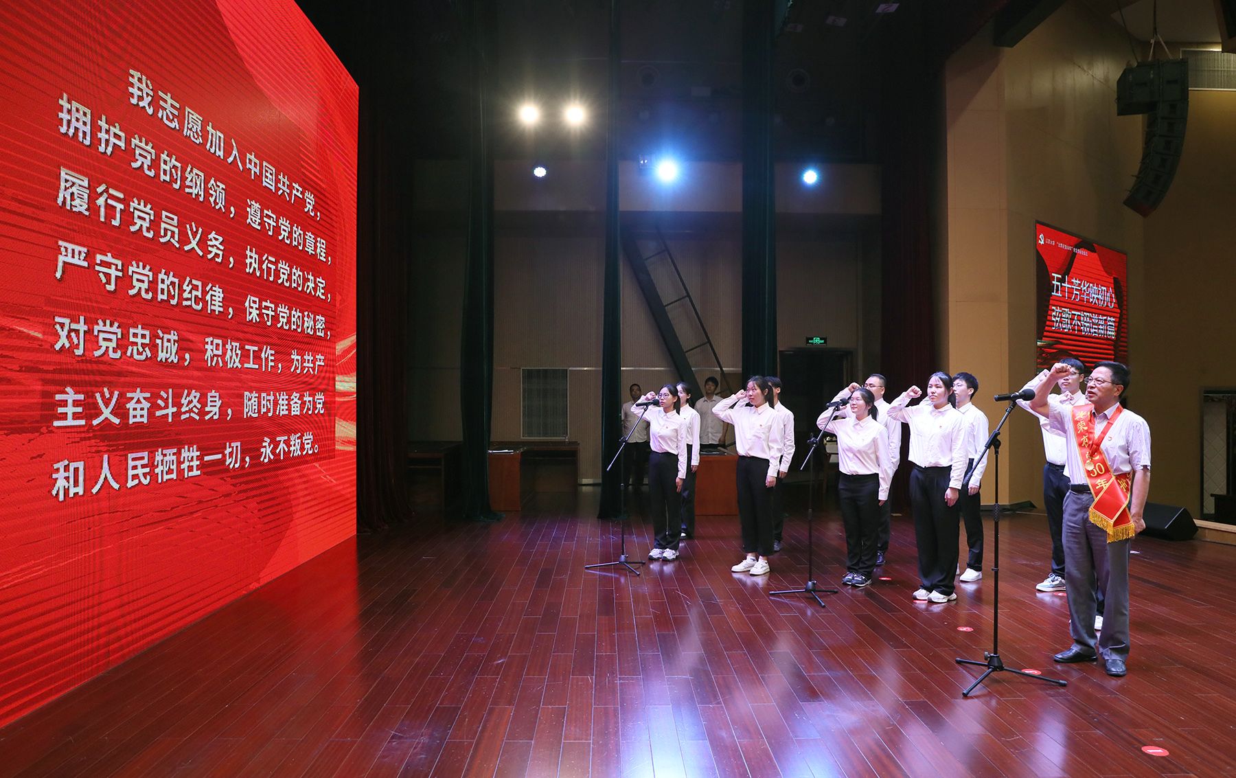 “光荣在党50年”党员代表,开云手机站在线登入纪委原书记、校关心下一代工作委员会常务副主任柴顺根同志发言,并带领新党员代表入党宣誓、全体党员代表重温入党誓词。