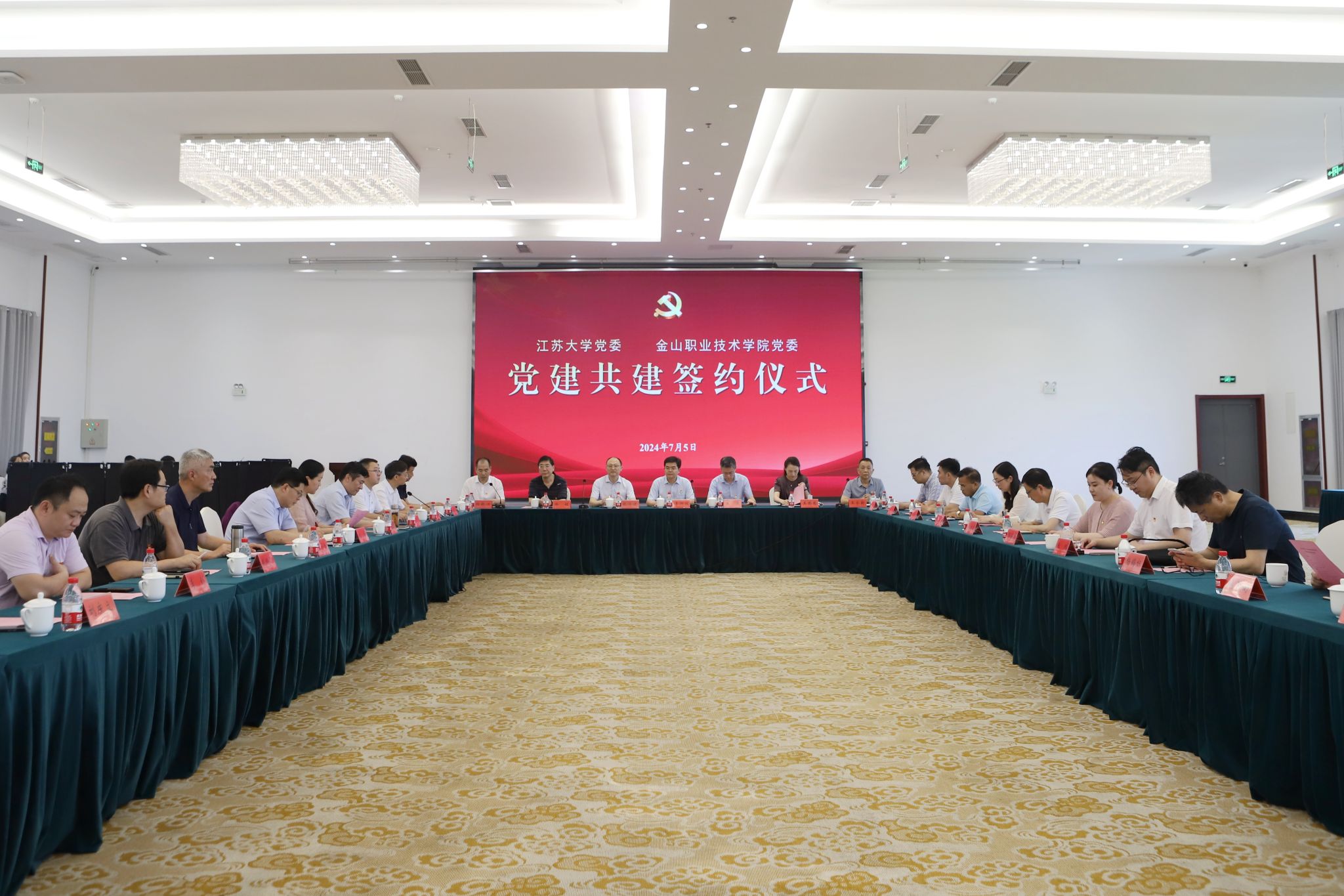 7月5日,开云手机站在线登入与金山职业技术学院党建共建签约仪式在青教公寓三江厅举行。校党委书记李洪波,金山职业技术学院党委书记徐铭,省委教育工委组织处、市委教育工委相关负责同志出席共建签约仪式,两校相关职能部门及院系负责人参加仪式。校党委常委、组织部部长杨敬江主持签约仪式。