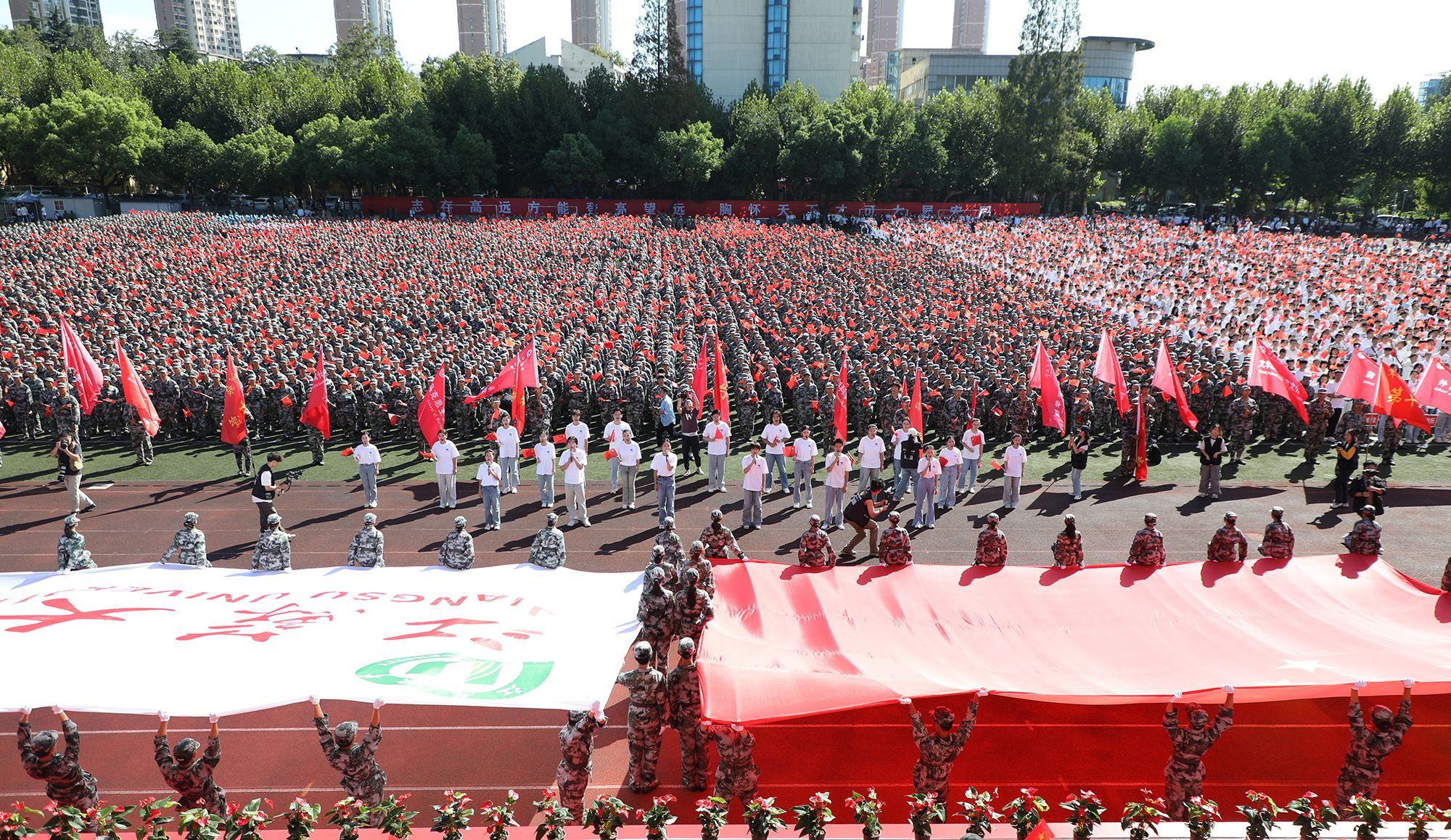 9月23日,开云手机站在线登入2024级新生开学典礼暨军训成果汇报大会在东山操场举行。