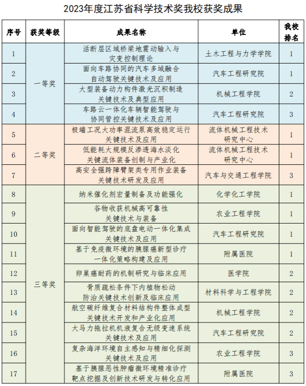 11月7日,全省科技大会暨全省科学技术奖励大会在南京举行,隆重表彰2023年江苏省科学技术奖获得者,我校获奖代表受邀参加。我校共计17项科研成果获奖,牵头获奖成果总数位居全省高校第三、省属高校中并列第一。