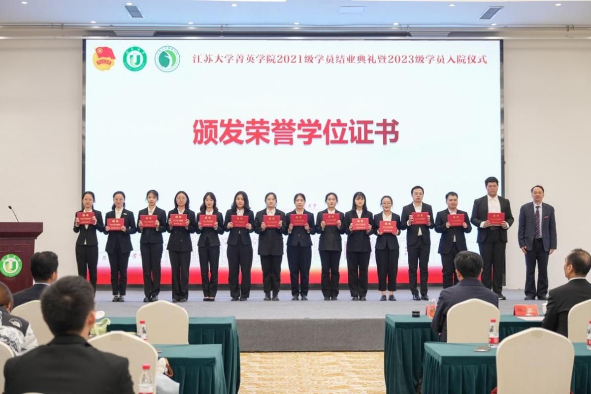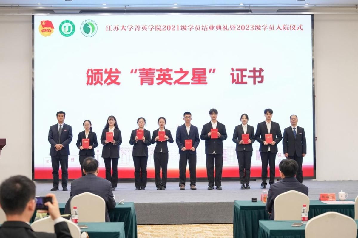 典礼上,与会领导为学员颁发了菁英学院荣誉学位证书、“菁英之星”荣誉证书,为新学员代表佩戴了院徽。