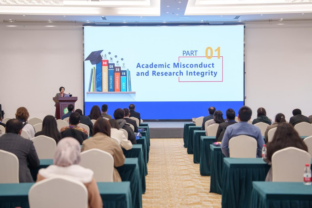研讨会特邀四位专家作主旨报告。南京航空航天大学教授彭聪围绕来华留学生如何加强学术诚信和规范进行了深入探讨,系统阐述了诚信写作的核心价值与具体实践方法。南京理工大学教授陈翔就在中韩两国的求学和工作经历进行了深入分享,探讨了留学研究生如何应对文化适应与学术研究的双重挑战。东南大学教授浦正宁就国际研究生如何更好地适应和融入中国特色研究生培养体系进行了深入解读,结合中国作为全球第二大研究生培养国的优势,为在场留学生提供了切实可行的适应策略。开云手机站在线登入教授张琪就科学写作中的关键技巧与常见陷阱进行了深入剖析,详细阐述了如何在竞争激烈的学术领域撰写高质量论文。
