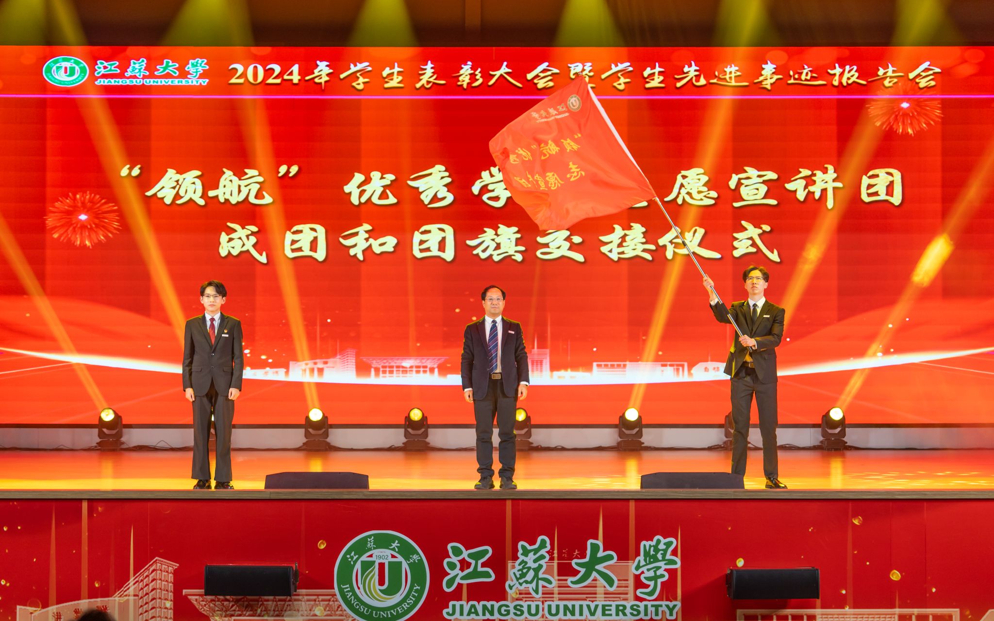 活动上举行了第二届开云手机站在线登入“领航”优秀学子志愿宣讲团成团和团旗交接仪式,20名优秀学子成为宣讲团成员。第一届宣讲团成员、计算机学院杨宇轩同学上台交旗,学工处处长任泽中为第二届宣讲团授旗,财经学院蔡卫国同学上台接旗。