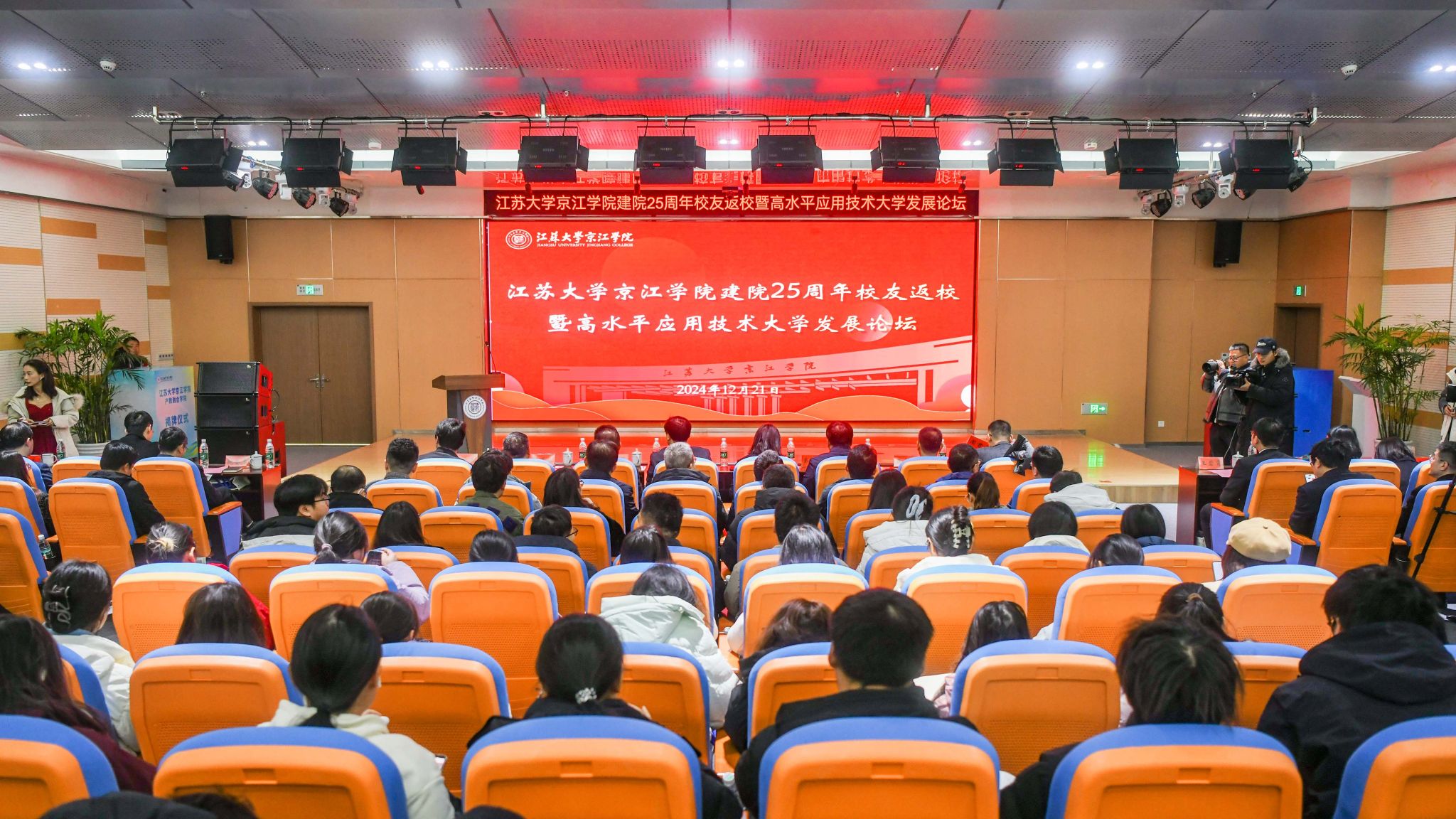 12月21日,京江学院在学术交流中心报告厅举行建院25周年校友返校暨高水平应用技术大学发展论坛。镇江市政协副主席、开云手机站在线登入副校长陈红,镇江市发展和改革委员会副主任朱华,南京师范大学中北学院院长戴传超,校友会与对外联络办公室主任李国昊,企业代表,京江学院全体院领导、校友代表、教师代表、学生代表出席大会。