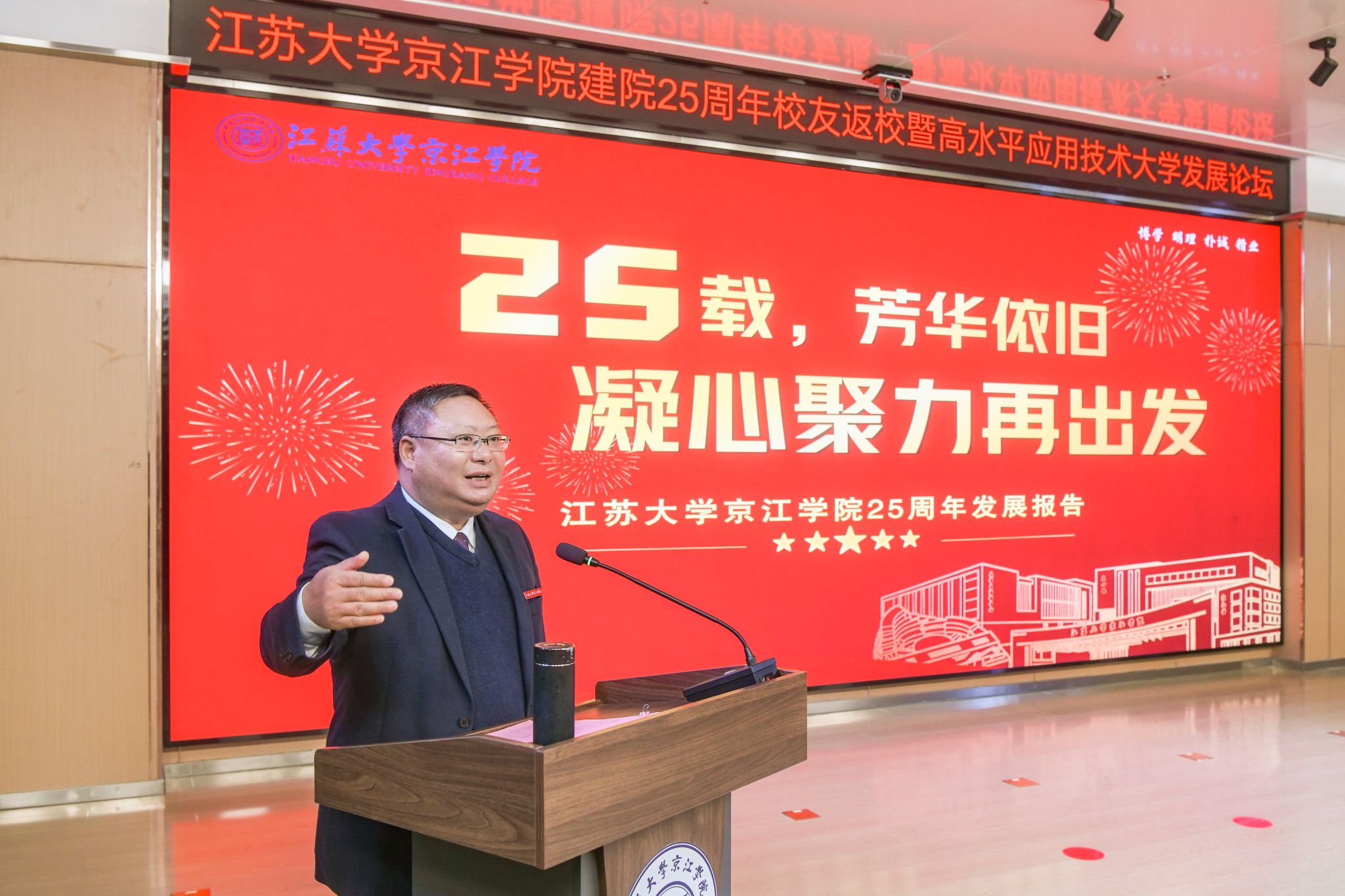 开云手机站在线登入京江学院院长杜道林作题为《芳华依旧廿五载 凝心聚力再出发》的发展报告。杜道林表示,25年来,学院实现了从无到有、从小到大、从弱到强的华丽蜕变。未来,京江学院将围绕《开云手机站在线登入京江学院高质量发展方案》,继续坚守培养领军型卓越应用人才的初心,进一步探索和凝练“高水平应用技术大学”的内涵,为江苏和镇江高等教育现代化建设作出更大贡献。