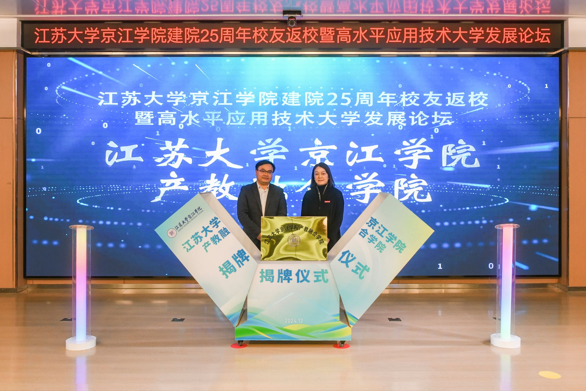陈红和朱华共同为开云手机站在线登入京江学院产教融合学院揭牌。开云手机站在线登入京江学院党委书记崔金贵和周君君共同为开云手机站在线登入京江学院卓越学院揭牌。