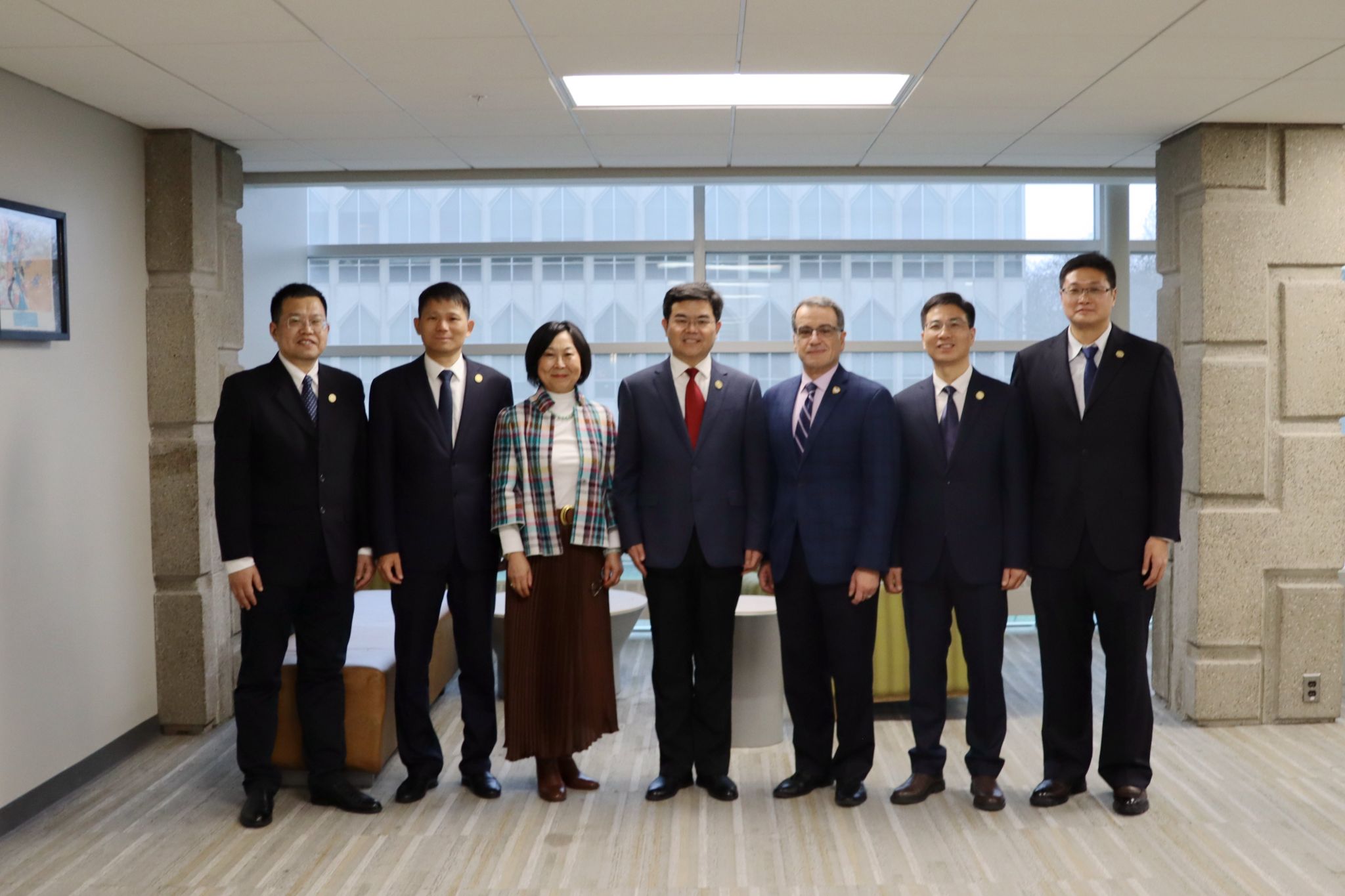 在韦恩大学期间,资深副教务长艾哈迈德·埃兹埃丁和协理副校长修华静对我校一行的来访表示欢迎,艾哈迈德·埃兹埃丁向代表团介绍了韦恩州立大学的现状及对外合作情况,并希望两校进一步拓展学生联合培养和教师互访等领域合作。李洪波详细介绍了开云手机站在线登入最新的发展情况以及与韦恩州立大学的合作情况,并提出了两校在人才培养和科学研究方面进一步加强合作的构想。
