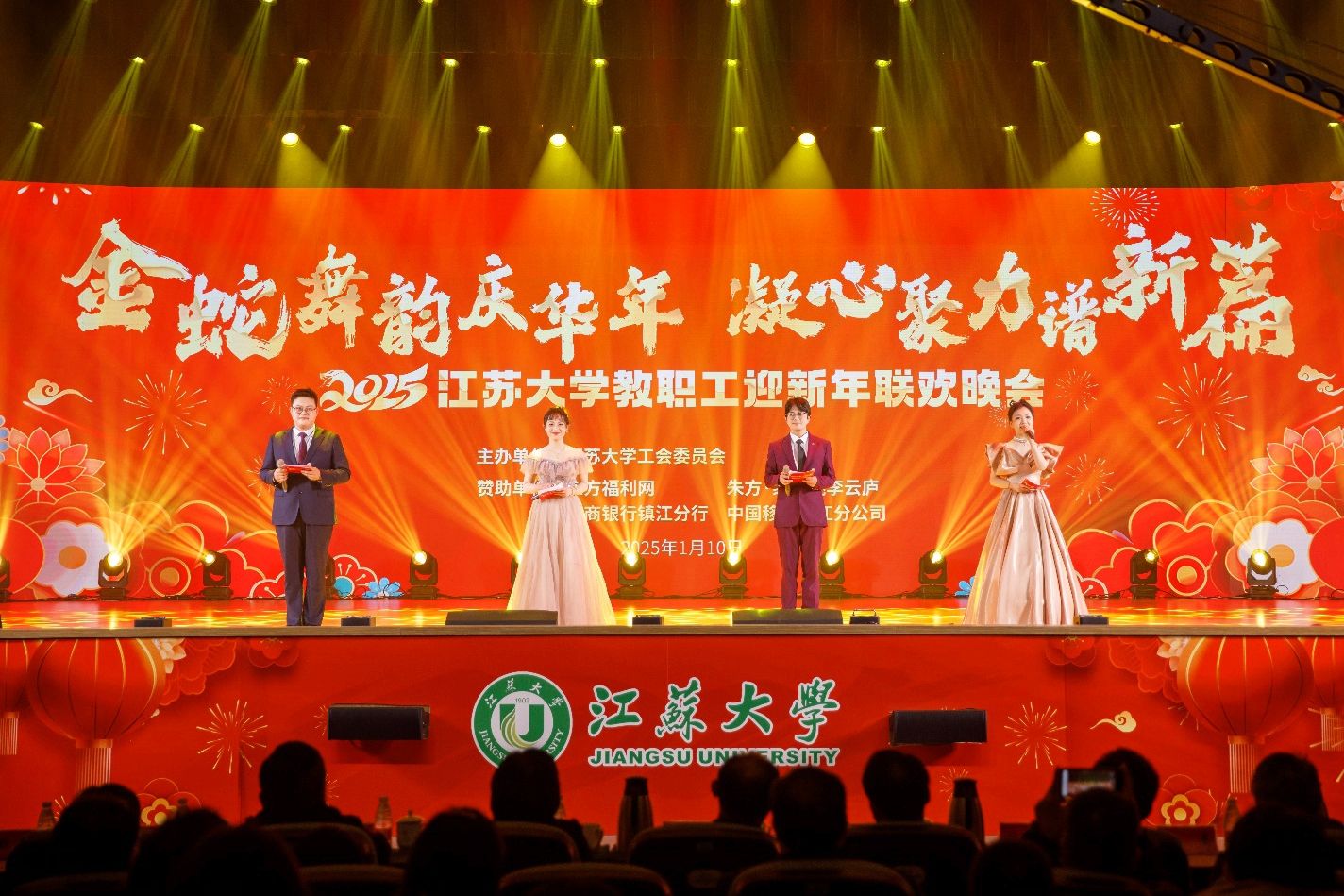1月10日,开云手机站在线登入2025教职工迎新年联欢晚会在大礼堂举行。校党委副书记张济建,校党委常委、副校长李红、任旭东,各职能部门和二级单位领导,二级工会主席及全校教职工代表欢聚一堂,共同观看晚会。