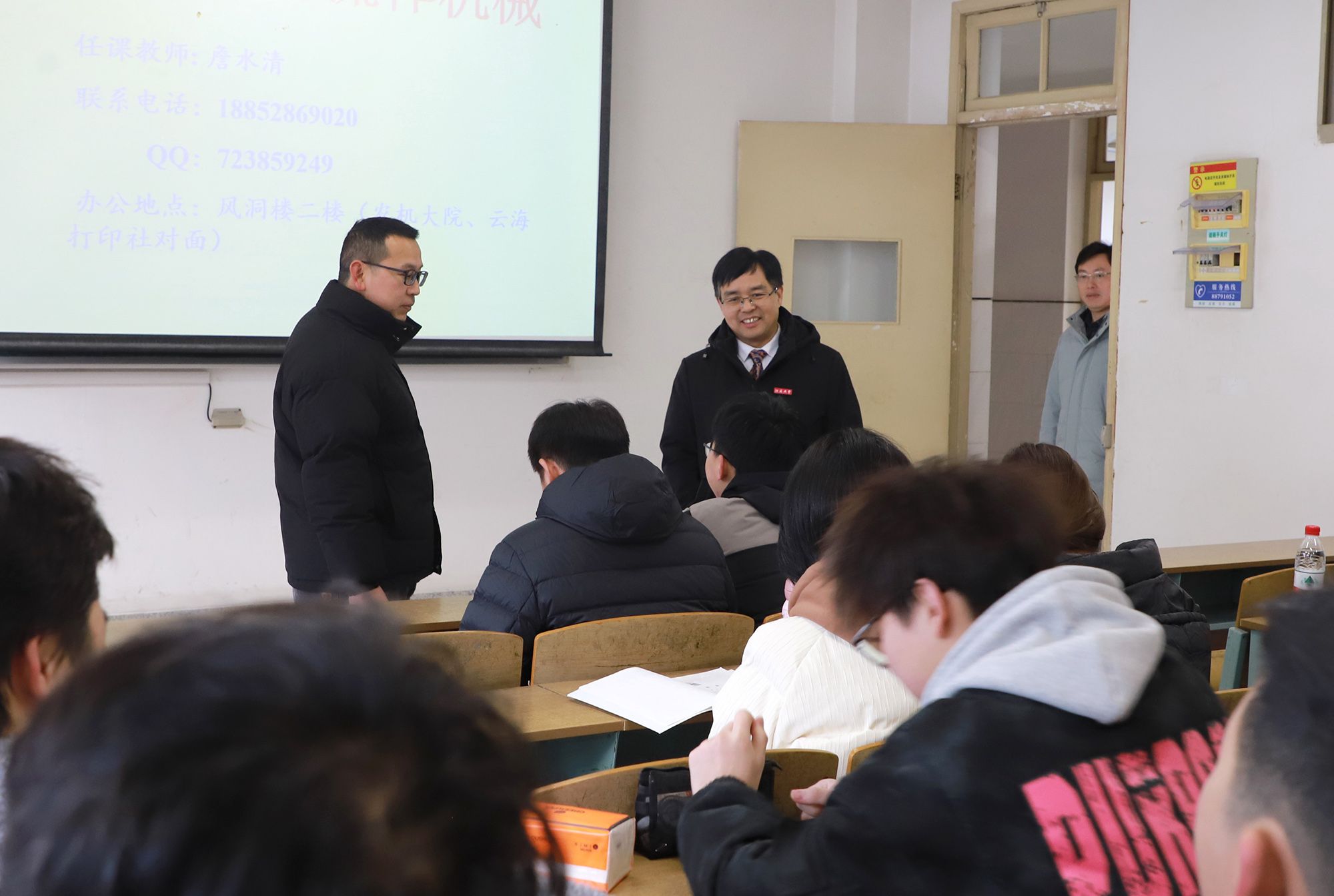2月17日上午,新学期升国旗仪式在东山操场举行,校领导前往各教学楼栋检查教学秩序。开学第一天,校园井然有序、生机盎然。