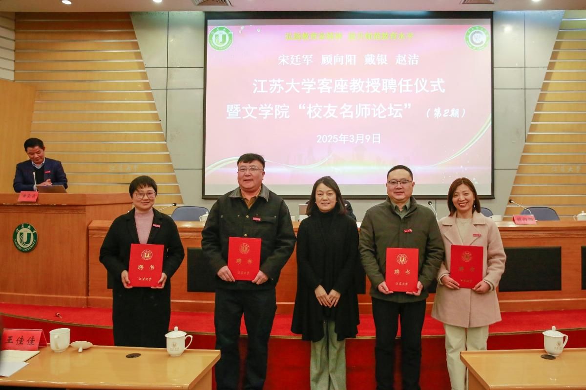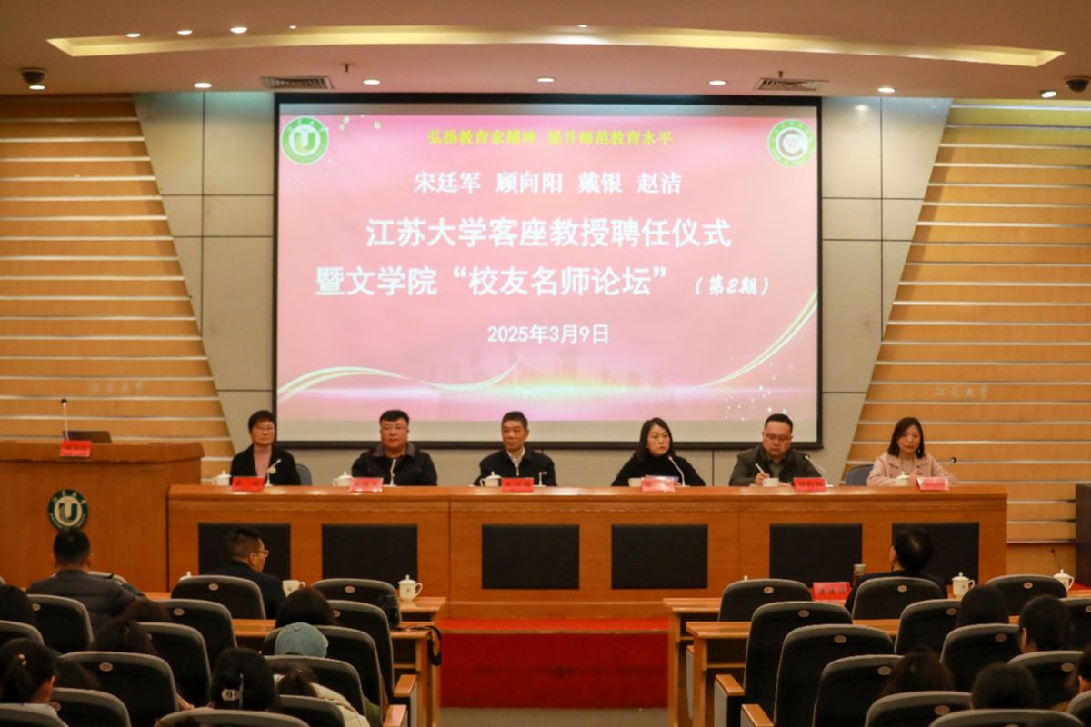 3月9日,开云手机站在线登入客座教授聘任仪式暨文学院“校友名师论坛”(第二期)在会议中心第一报告厅举行。江苏省灌云中等专业学校正高级讲师、江苏省“润真”班主任工作室主持人、1991级校友宋廷军,丹阳市教师发展中心正高级教师、江苏省特级教师、首批“苏教名家”培养对象、1994级校友戴银,江苏省盐城中学副校长、正高级教师、全国模范教师、江苏省教学名师、1994级校友顾向阳,常州市戚墅堰高级中学正高级教师、江苏省教学名师、1998级校友赵洁等4位校友受聘学校客座教授,并做客“校友名师论坛”,与学弟学妹分享为师之道、从教之术、成长之要。