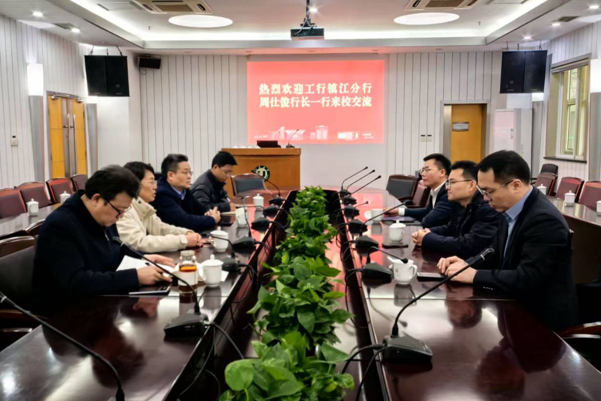 3月13日,工行镇江分行行长周仕俊、副行长王正华一行来校交流。校长邢卫红、副校长杨道建接待了周仕俊一行。