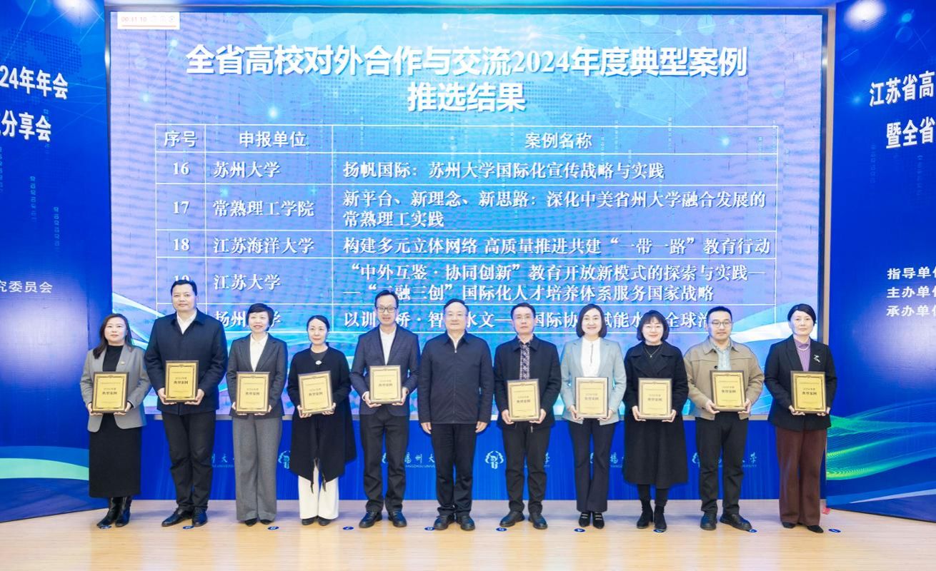 近日,江苏省教育厅公布了江苏高校对外合作与交流2024年度典型案例,我校报送的《“中外互鉴·协同创新”教育开放新模式的探索与实践——“三融三创”国际化人才培养体系服务国家战略》工作案例获评优秀案例。