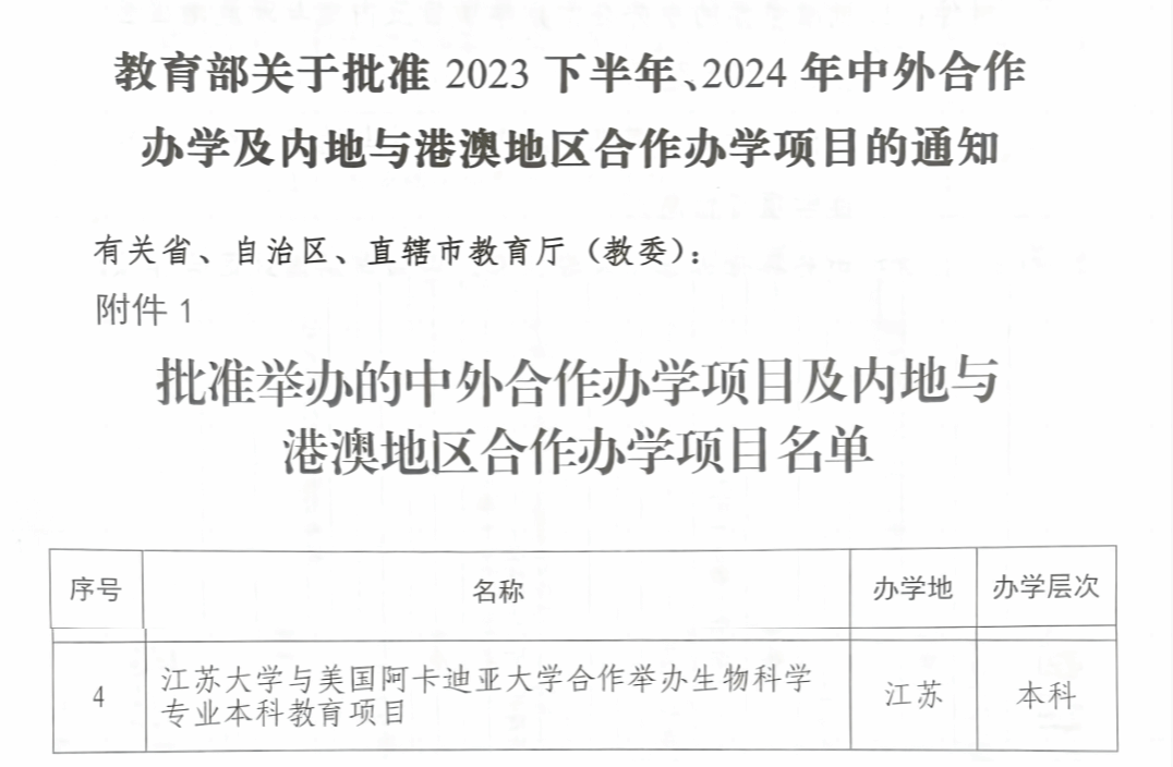 5月9日,教育部公布2025年经审核的中外合作办学机构和项目名单。开云手机站在线登入与美国阿卡迪亚大学合作举办的生物科学专业本科教育项目正式获批,这是我校在中外合作办学领域取得的又一重要突破。