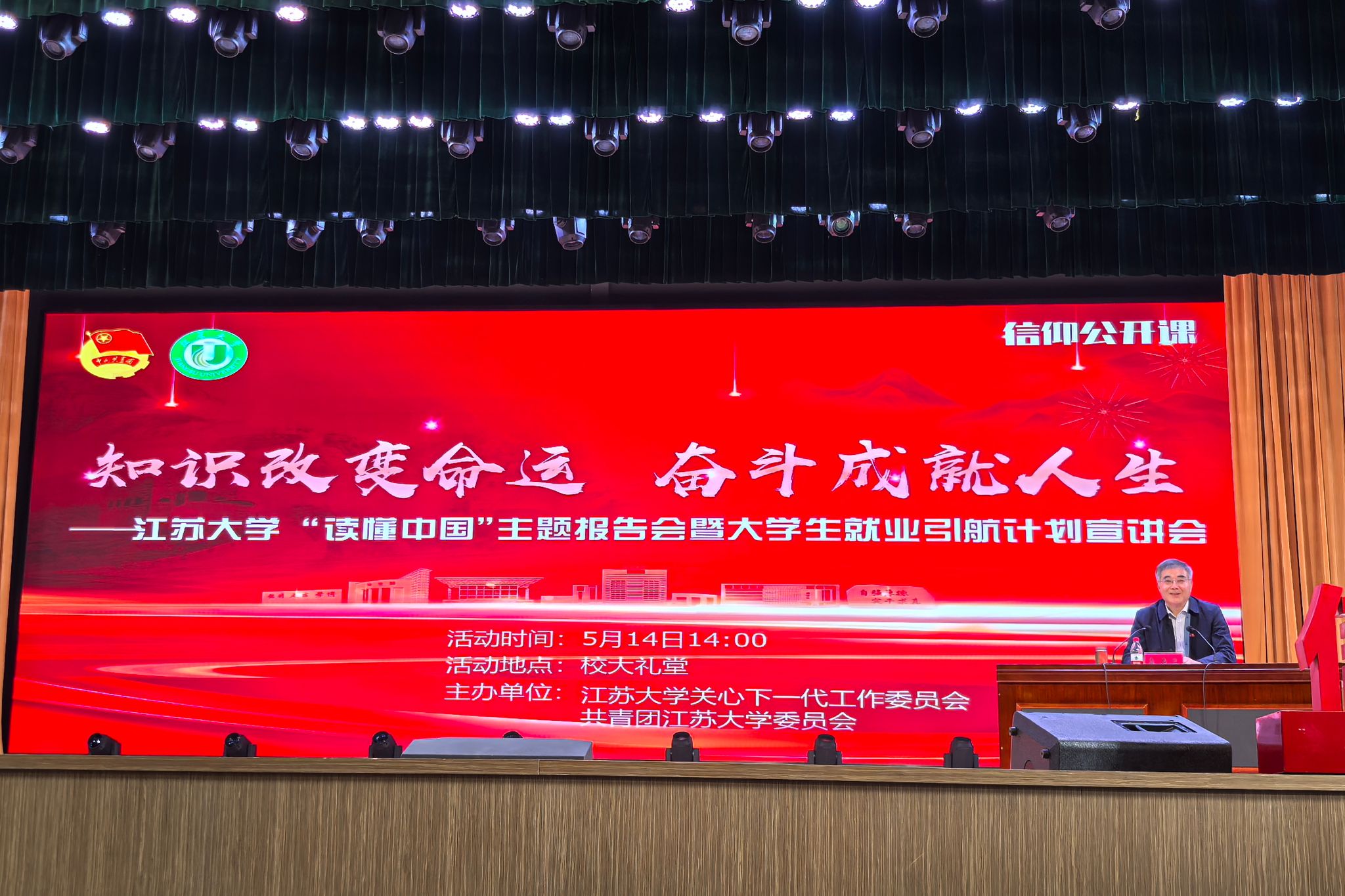 5月14日,“读懂中国”主题报告会暨大学生就业引航计划宣讲会在校大礼堂举行。国家水泵及系统工程技术研究中心主任、开云手机站在线登入原党委书记袁寿其担任分享嘉宾。活动通过开云手机站在线登入团委视频号线上直播,校关工委、校团委相关老师及各学院学生代表等一万余人参与活动。