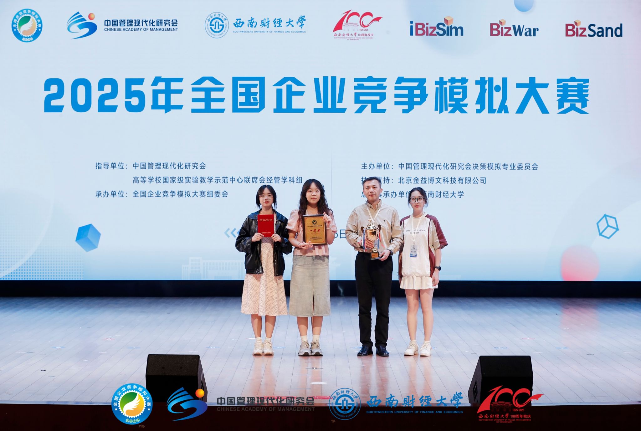 5月18日,2025年全国企业竞争模拟大赛总决赛在西南财经大学落下帷幕。我校管理学院学生曹宇航、高若瑜、陶玫予由教师李毅心指导带队,在总决赛中荣获一等奖,学校获评优秀组织奖。李毅心受邀在大赛数智管理教育教学研讨会上作主题报告分享。