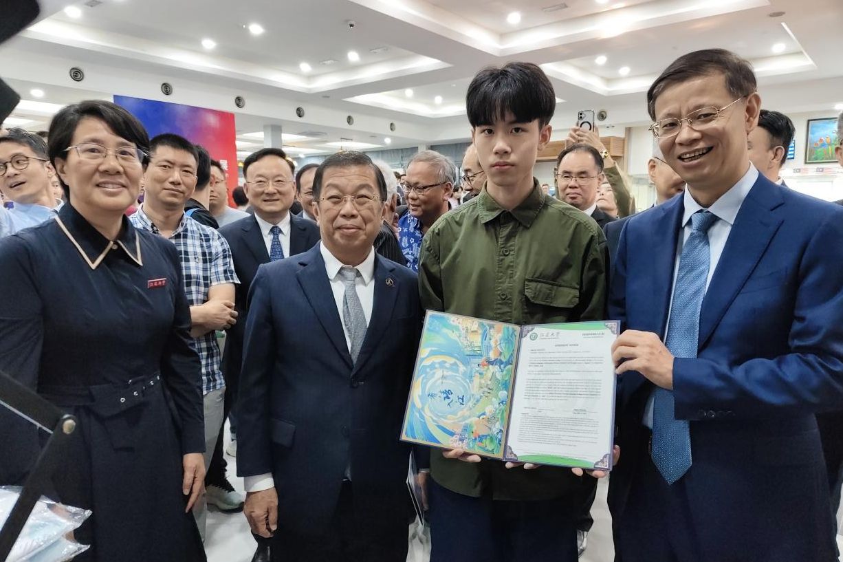 5月20日,邢卫红一行参加江苏—马来西亚高校合作交流活动暨留学江苏展。江苏省人民政府省长许昆林、马来西亚国会议员陈国伟、马来西亚上议员理事会主席拿督斯里凯鲁丁·沙末,江苏省人民政府秘书长吕德明、马来西亚教育交流协会会长马汉顺、马来西亚种植及原产业部部长顾问陈耀宗一行来到开云手机站在线登入展位。邢卫红向许昆林介绍了开云手机站在线登入国际人才发展状况,许昆林与来华留学新生家长亲切对话,并为来华留学新生颁发录取通知书。马来西亚科学院院士陈国银参加活动。