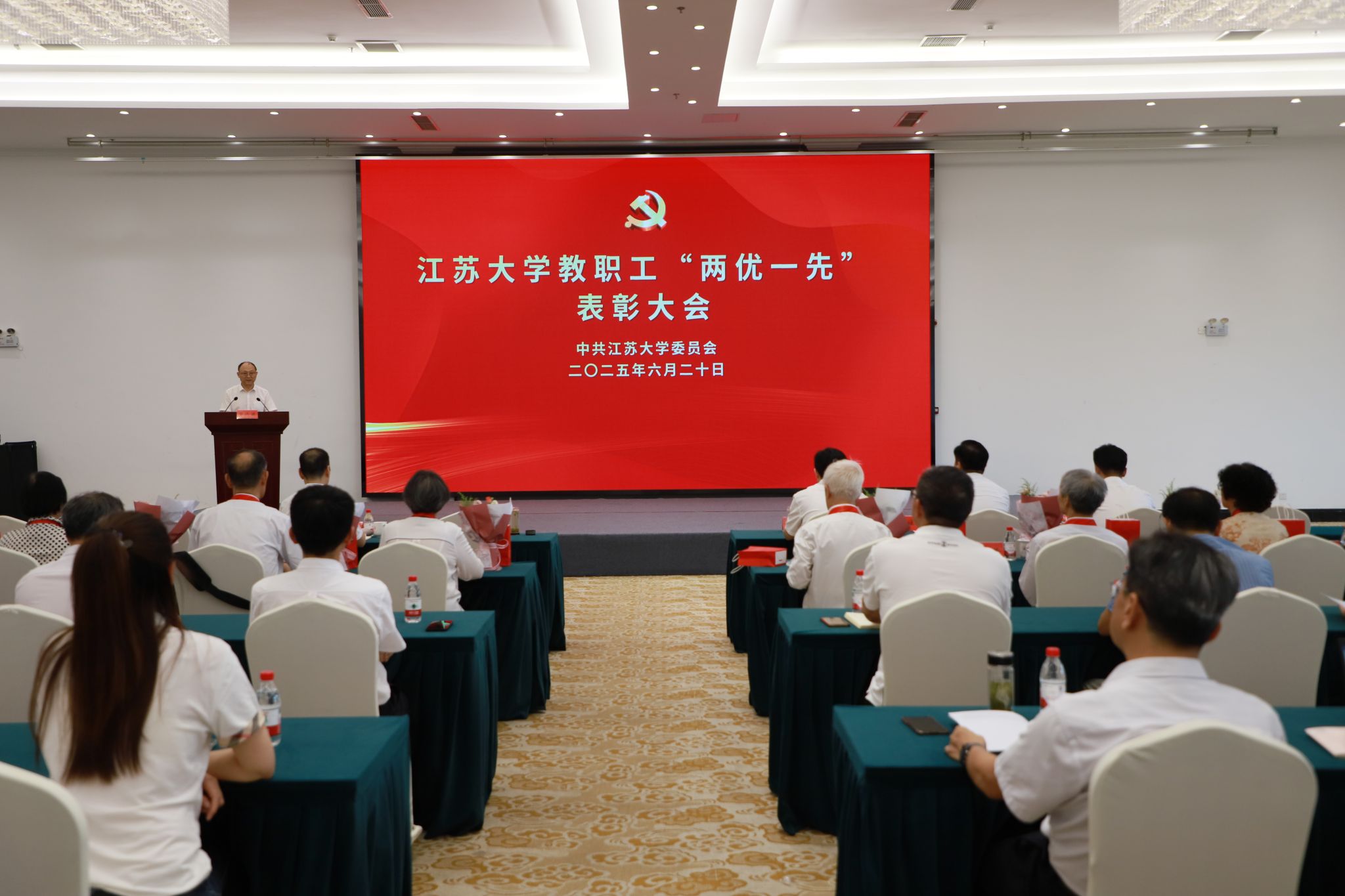 在庆祝中国共产党成立104周年之际,为表彰先进、致敬荣光,6月20日,“七一”表彰大会暨“光荣在党50年”纪念章颁发仪式在青教公寓三江厅举行。校党委书记李洪波,校党委副书记张济建,校党委常委、纪委书记、派驻监察专员杜永春,校党委常委、组织部部长杨敬江,校党委常委、宣传部部长、统战部部长吴麟麟出席大会。大会由张济建主持。