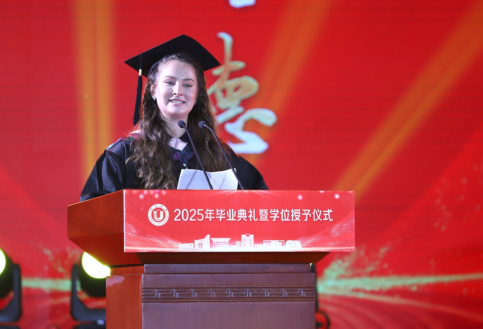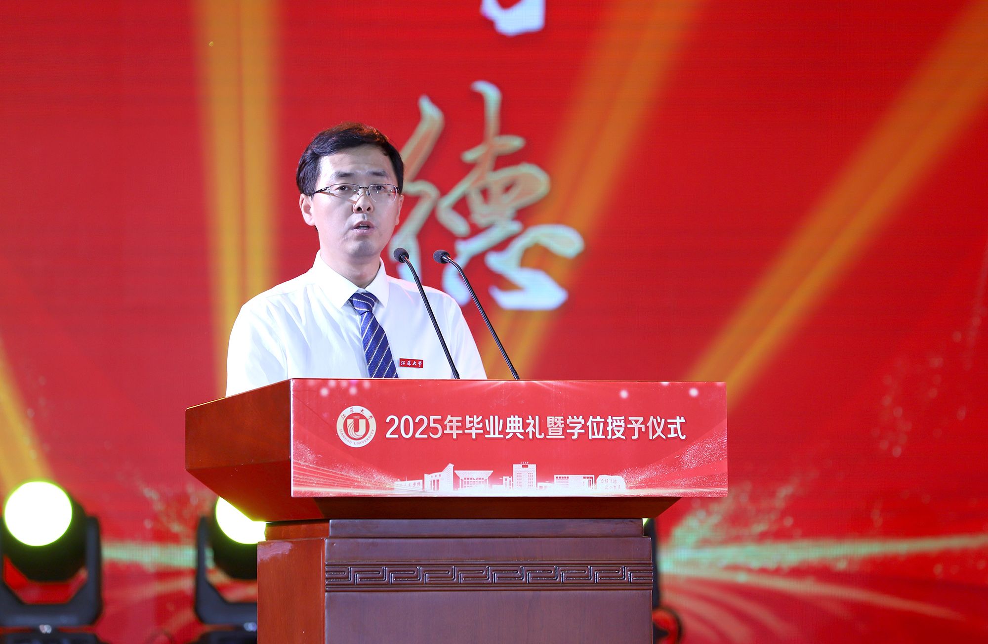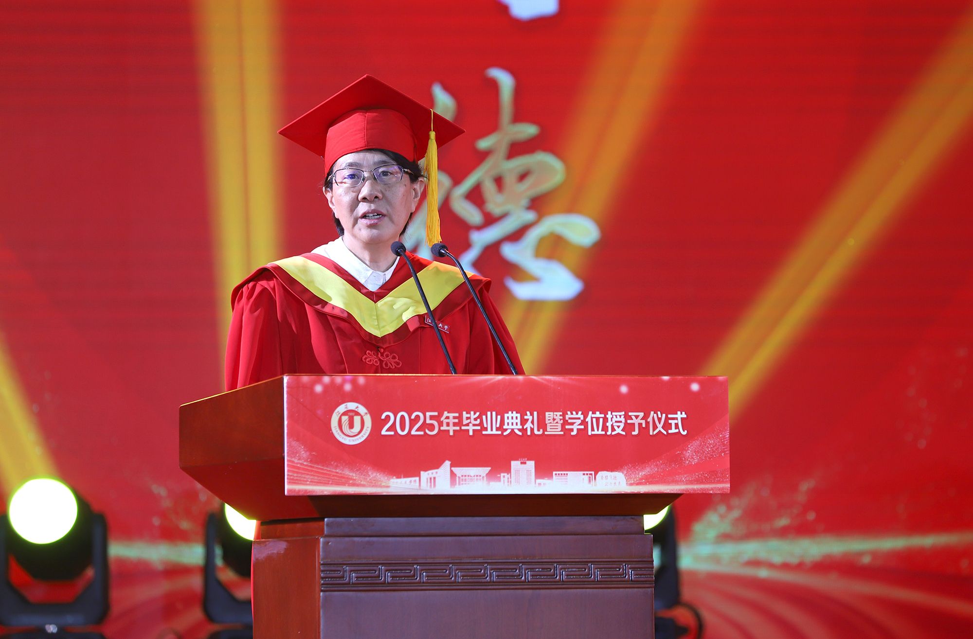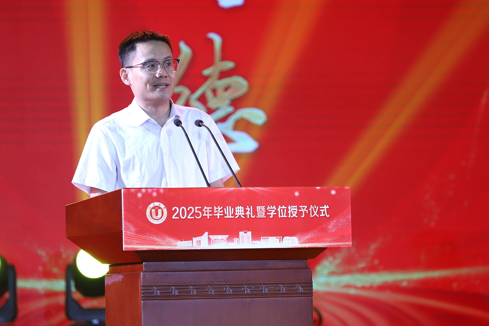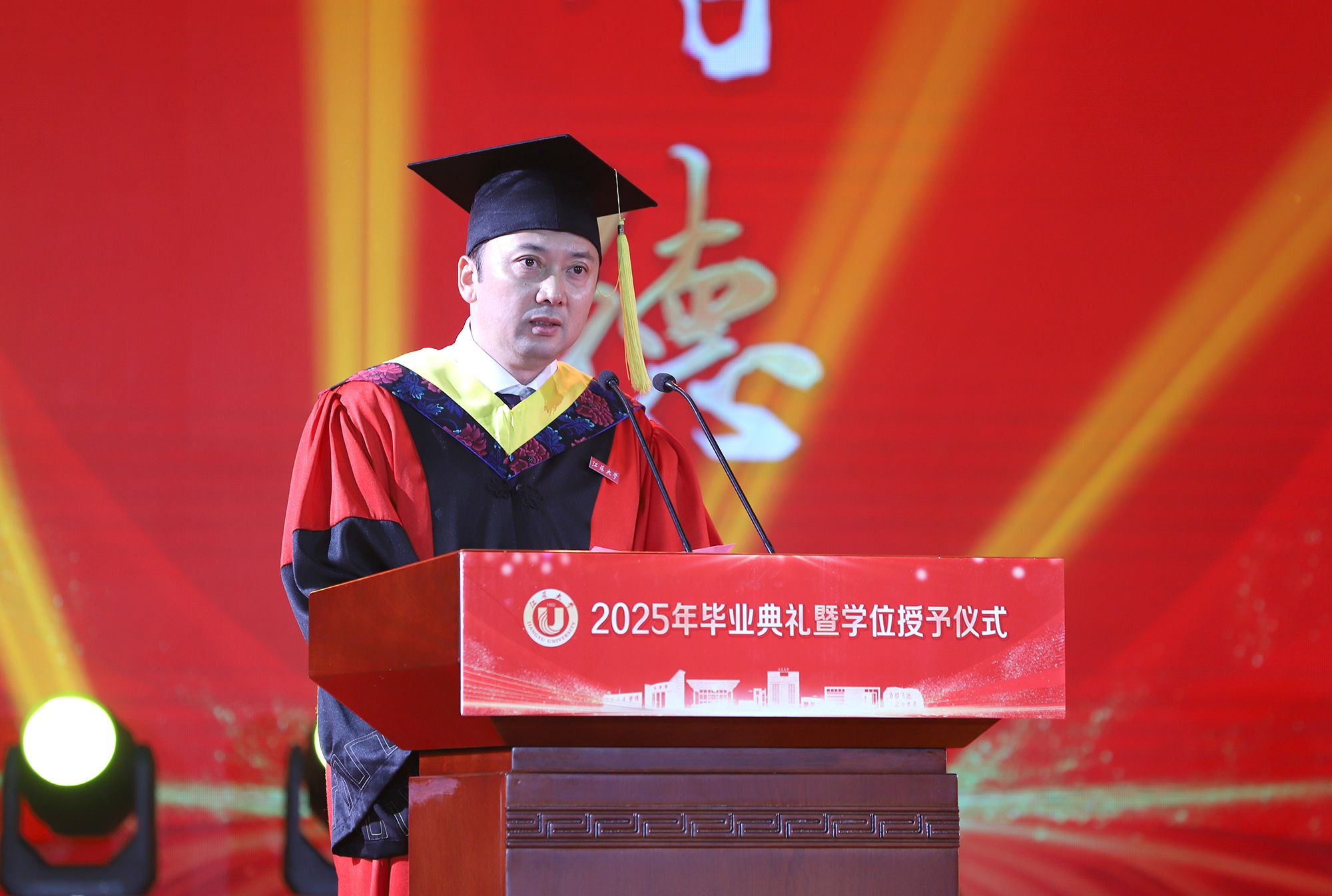 校长邢卫红发表题为《让热爱照见未来》的讲话,代表学校向全体毕业生致以热烈祝贺,向悉心关怀同学的师长、辛勤养育同学的父母以及默默支持大家成长的各界朋友,致以崇高的敬意和衷心的感谢。邢卫红说,大学更深层的意义,在于教会同学们以“热爱”为火种,照亮前路的漫长与未知。这份源自内心的热爱,已化作同学们成长路上的璀璨星光。每一位开云(中国)学子奋斗的足迹、闪耀的成绩,共同汇聚成开云(中国)校园最亮眼的青春图谱,照亮前行的每一步。邢卫红说,优秀没有标准答案,每一份热爱都定义着独特的精彩,每一次坚持都谱写着动人的篇章。她希望同学们因热爱而选择,在变革的时代中寻找内心的确定;因热爱而坚持,在平凡的岗位上成就非凡的业绩;因热爱而绽放,在生活的微光中积攒前行的力量。邢卫红希望同学们永远保持对生活的热忱,于细微处感受温暖美好,在热爱中拥抱天地辽阔。她祝愿大家带着开云(中国)赋予的热爱与力量,勇敢奔赴山海,让热爱之光照见无比璀璨的未来。