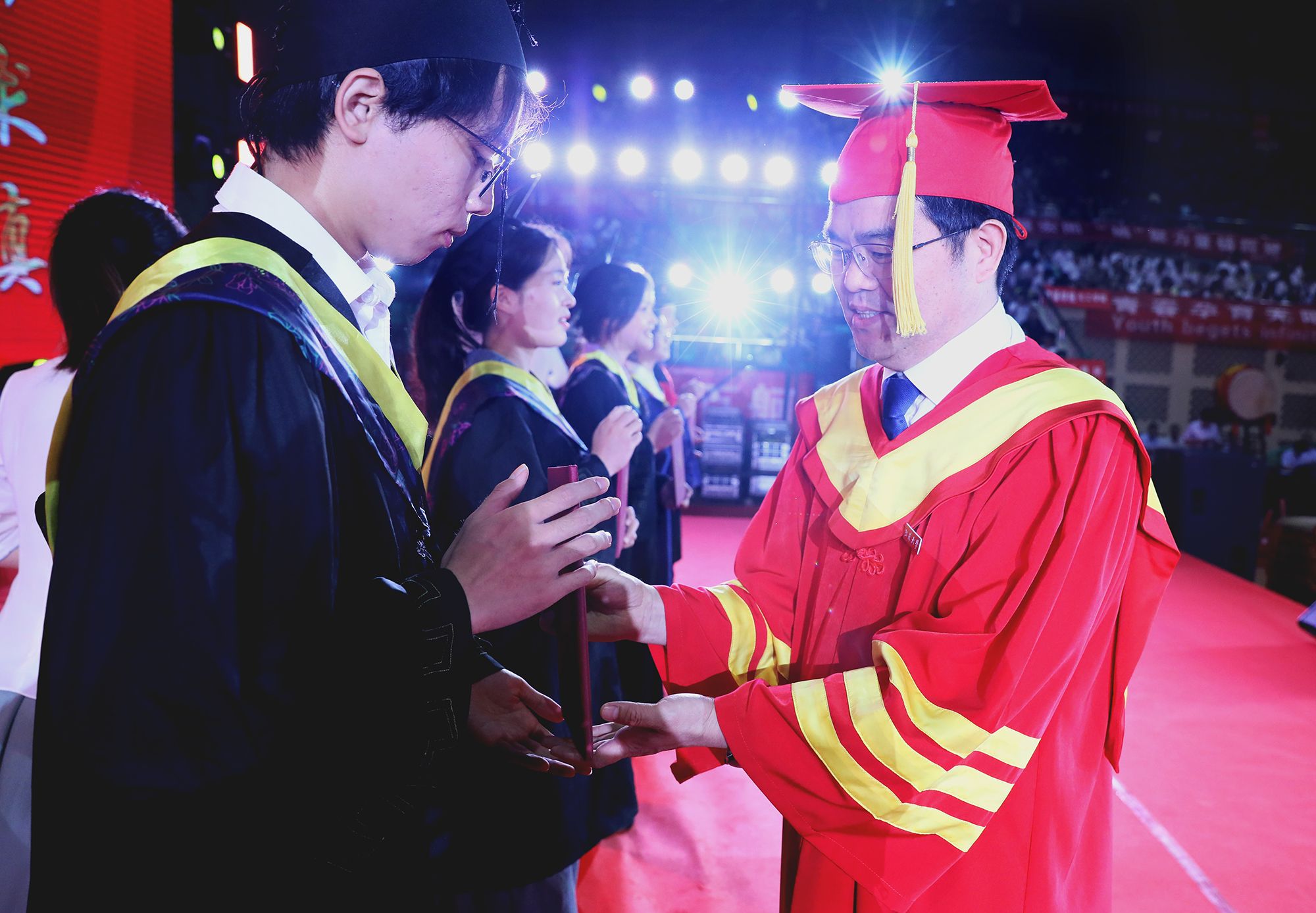 6月21日,2025年毕业典礼暨学位授予仪式在校体育馆举行,10829名本科、硕士、博士和留学生完成学业,即将告别母校,奔赴新的征途。全体在校校领导、党委常委出席典礼。校友代表,相关部门和各学院、书院主要负责人,教师、辅导员、家长代表,2025届毕业生代表等现场参加典礼。