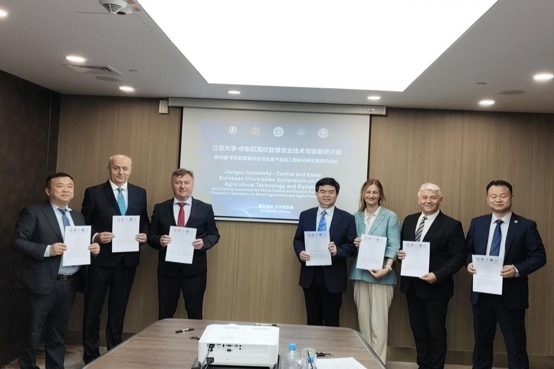 6月26日,代表团与东欧高校联合举办了中国(江苏)—波黑(中东欧)智慧农业技术与装备“一带一路”联合实验室模块化研究室建设研讨会,与中东欧各国高校、院所及企业开展技术发布与对接。李洪波、波黑东萨拉热窝大学校长Milan Kulic、塞尔维亚诺维萨德大学校长Dejan Madić、塞尔维亚尼什大学校长Jovan Stepanović、波黑巴尼亚卢卡大学副校长Milica Balaban以及农业装备国际(产能)合作联盟理事单位江苏联博精密科技股份有限公司总经理萧庆鹏、镇江刘恒记食品有限公司总经理刘潮军,共同签署了“中国—中东欧智慧农业与农食产品加工模块化研究室”共建协议,标志着区域农业科技合作进入新阶段。当日,代表团还拜访了贝尔格莱德大学,促进江苏相关实体与该校的科技交流。