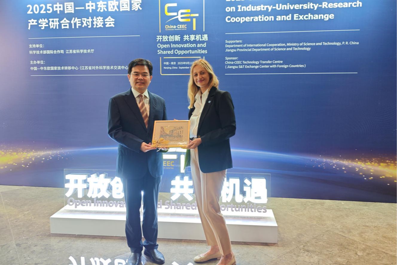 9月12日,由科学技术部国际合作司、江苏省科学技术厅支持举办,中国—中东欧国家技术转移中心(江苏省对外科学技术交流中心)主办的2025中国—中东欧国家产学研合作对接会在南京开幕。江苏省人民政府副省长赵岩出席开幕式并致辞,我校党委书记李洪波应邀出席并参加签约仪式。
