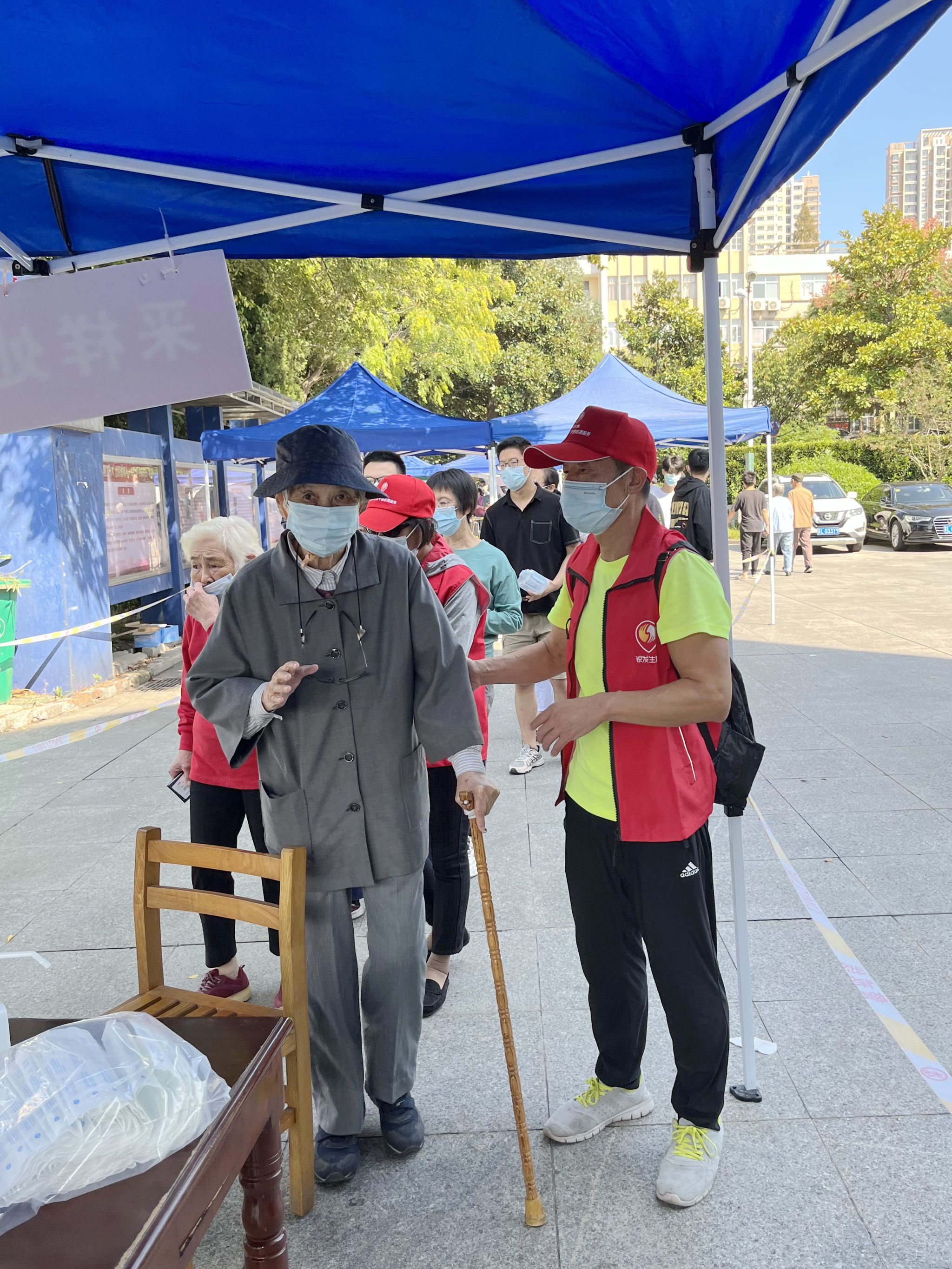 志愿者中年龄最长的已经70多岁,在疫情面前,她们从没有因为年长而退却。为了战胜疫情,银发志愿者从早晨6点到达,到下午5点多离开,长时间不间断的志愿服务,没有一人叫苦,没有一人喊累,更没有一人提前离开,为家属区每天2000多名人员的全员核酸检测提供了有力支撑。
