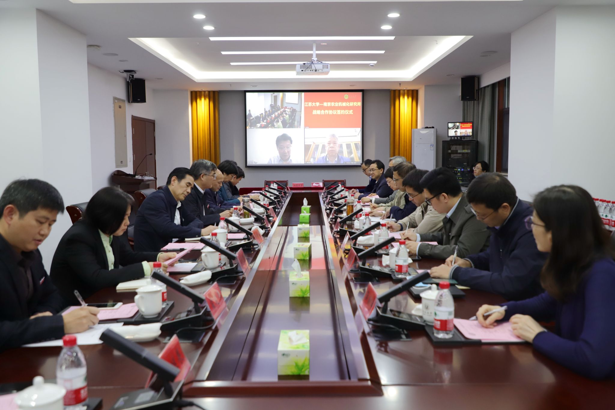 南京农业机械化研究所副所长曹光乔,党委副书记、纪委书记肖体琼,综合管理处、党委办公室、科技管理处、成果转化处、植保与环境工程技术研究中心等单位主要负责人,我校副校长全力、李红,校办、科技处、研究生院、智能农机装备理论与技术重点实验室、农业工程学院等单位负责人参加签约仪式。(校办 智能农机装备理论与技术重点实验室)
