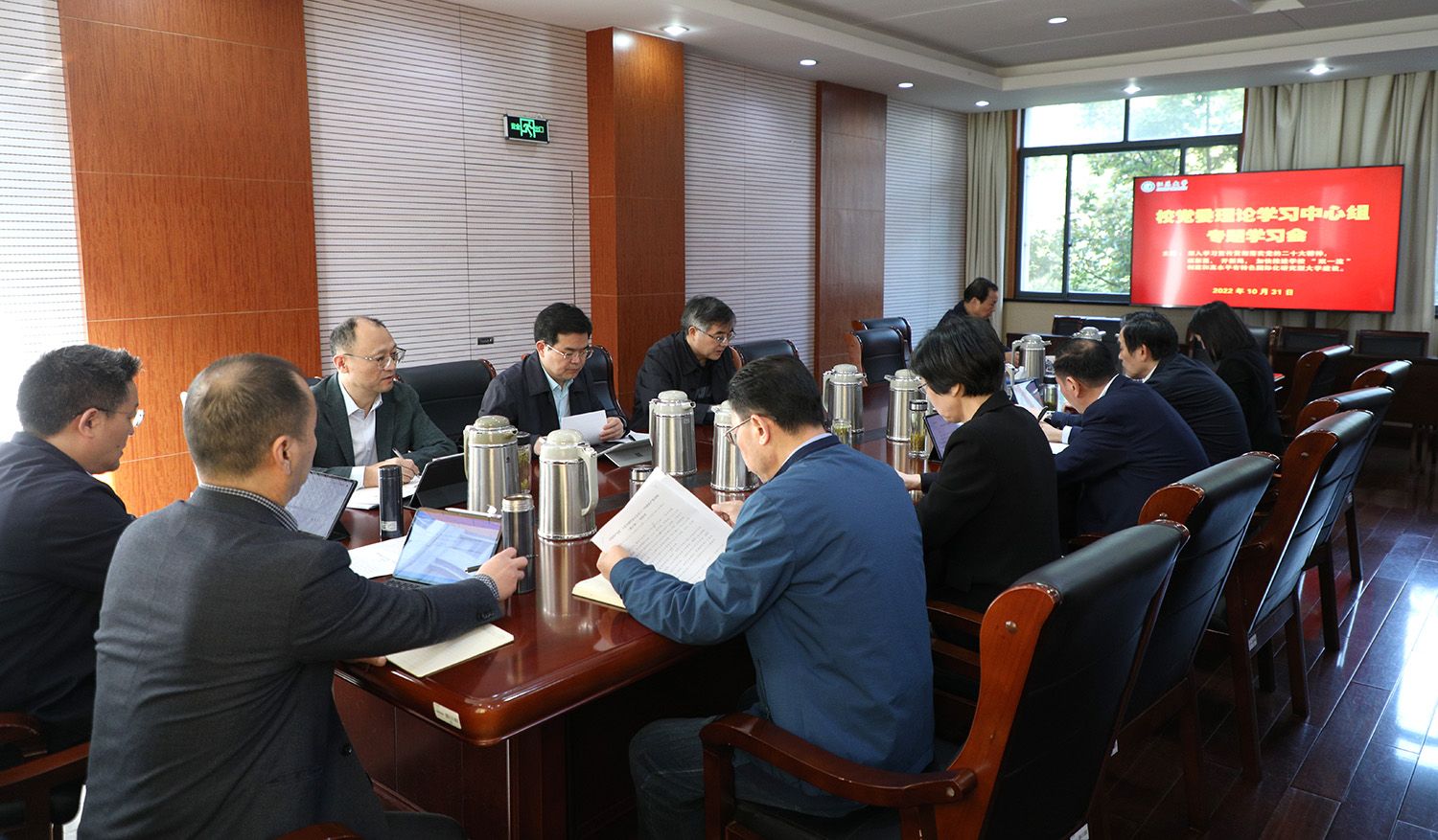 10月31日,校党委理论学习中心组在行政一号楼201会议室开展党的二十大精神专题集中学习研讨。集体学习研讨由校党委书记袁寿其主持。