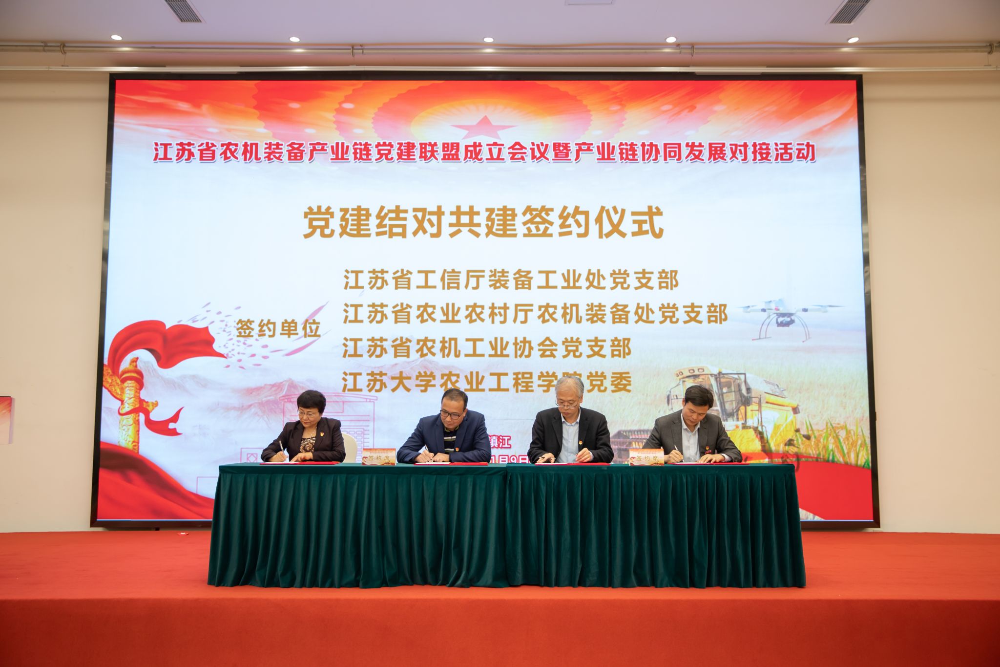 徐军、周宝银、袁寿其、颜晓红共同启动党建联盟成立程序。江苏省农机装备产业链党建联盟的成立,为高质量推动农机装备产业链发展提供了新的平台,对农机装备补短板、提升产业链韧性和安全水平,促进政产学研用协同发展具有重要作用。