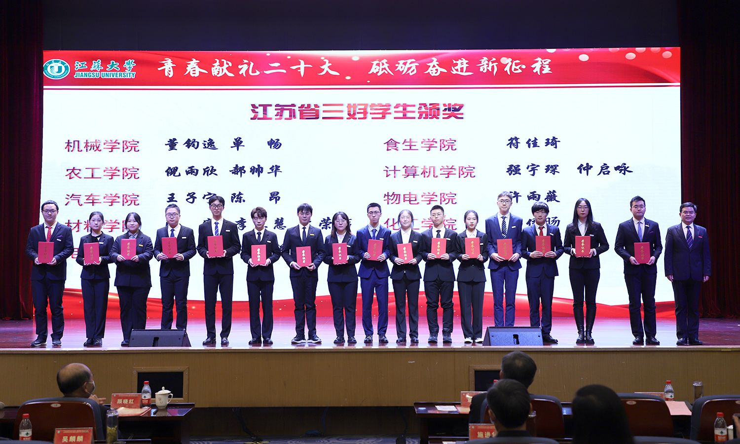 出席大会的领导为受表彰的先进集体和个人颁奖。校党委书记袁寿其为获得第八届中国国际“互联网+”大学生创新创业大赛国赛金奖、银奖团队代表和2022年全国大中专学生志愿者暑期“三下乡”社会实践活动优秀单位颁奖;颜晓红为2021-2022学年“博学”“求是”“明德”校长奖章获得者颁奖;校党委副书记李洪波为2022年度省级三好学生颁奖;校党委常委、纪委书记、派驻监察专员高庆国为2022年度省级优秀学生干部、省级先进班集体颁奖;副校长全力为2021-2022学年校三好标兵、校优秀研究生标兵颁奖;副校长赵玉涛为2022年度校大学生优秀共产党员代表颁奖;副校长李红为2022年度校大学生先进党支部颁奖;校党委常委、组织部部长马志强为2022年校社会实践活动先进单位颁奖;校党委常委、统战部部长杨敬江为2022年校社会实践活动十佳团队颁奖;校党委常委、宣传部部长杨道建为2022年校社会实践活动十佳个人颁奖。