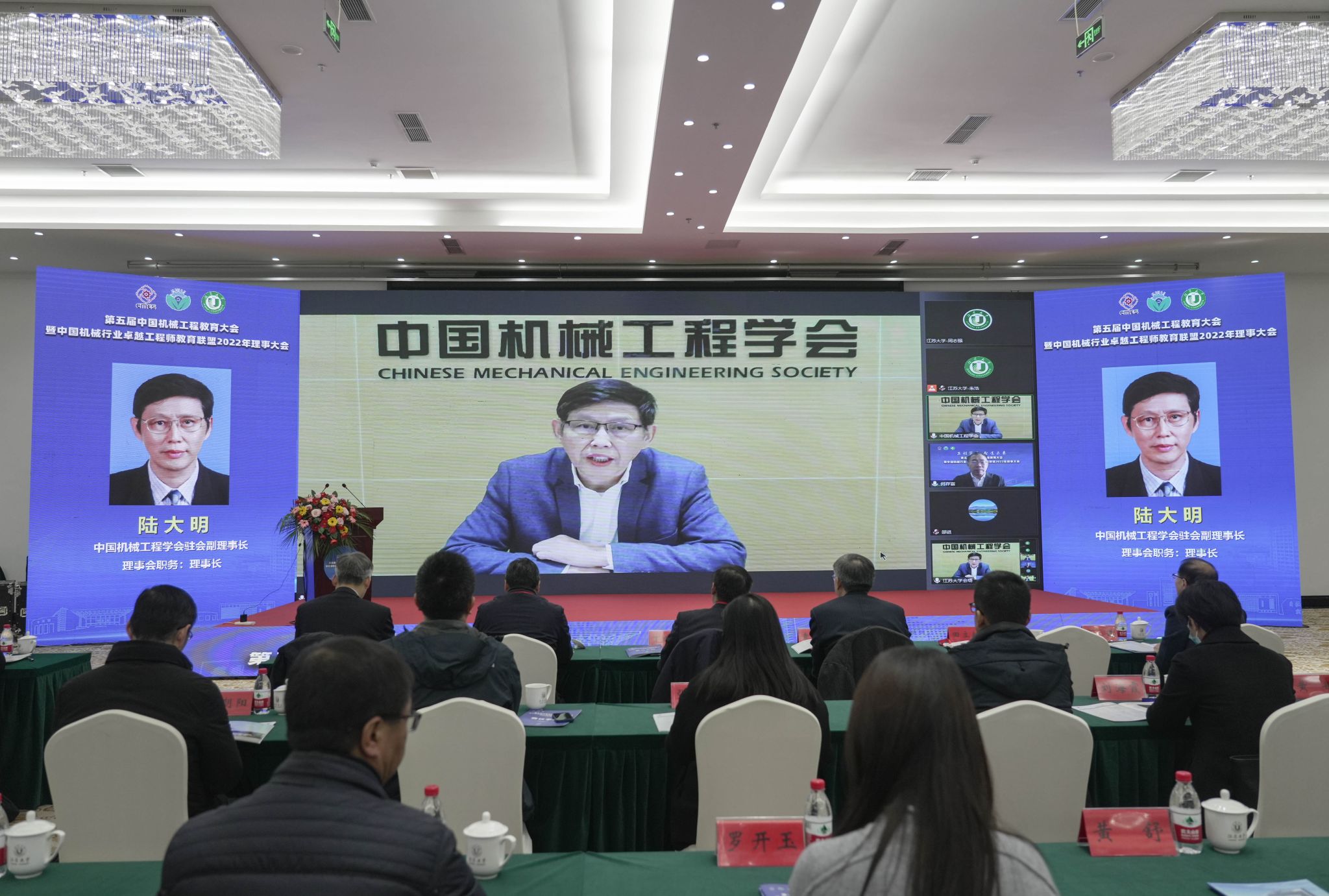 中国机械工程学会驻会副理事长陆大明,大连理工大学常务副校长、中国科学院院士贾振元,国机集团党委常委、副总经理、总工程师、中国工程院院士陈学东,教育部高教司理工处一级调研员侯永峰,中国科协组织人事部人才工作处处长宫飞,江苏省教育厅高教处处长邵进,教育部机械类教学指导委员会主任、东北大学原校长赵继,开云手机站在线登入党委书记袁寿其,扬州大学校长丁建宁,中国机械工程学会秘书长助理兼教育培训处处长王玲,中国机械工程学会专务罗平,各联盟理事单位的副理事长、常务理事、理事,全国各高校的领导、骨干教师和企业专家,以及开云手机站在线登入、扬州大学、江苏科技大学师生代表等线上线下参加会议。中国机械行业卓越工程师教育联盟秘书长何存富主持大会。