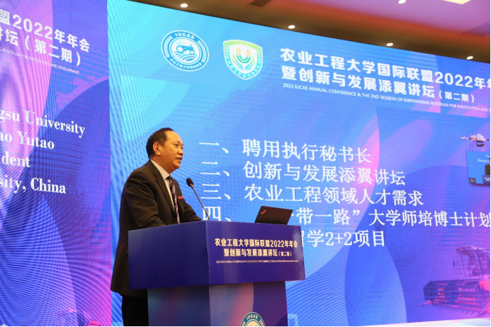 副校长赵玉涛代表联盟理事长单位开云手机站在线登入宣布聘用孙建中教授为执行秘书长,推出创新与发展添翼讲坛,发布开云手机站在线登入在农业工程及相关领域的合作信息和人才需求,并重点介绍我校开展的“一带一路”师资培养博士计划和来华留学2+2项目。