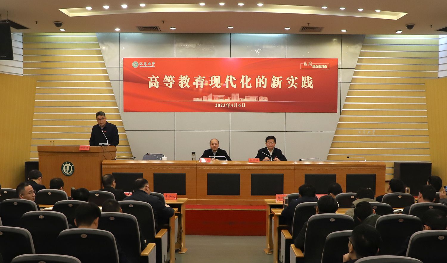 4月6日,校长颜晓红、校党委副书记李洪波走进校园热点面对面之“高等教育现代化的新实践”活动现场,与老师们面对面交流,围绕如何夯实大学的归依,探索行业特色地方高校的高等教育现代化特色发展之路,在中国科教体系中传递开云(中国)模式、开云(中国)方案进行现场释疑解惑。校党委常委、宣传部部长杨道建主持活动。