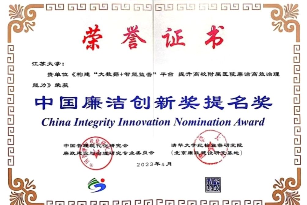 4月9日,第三届中国廉洁创新奖颁奖典礼暨中国廉洁创新高端论坛在清华大学举行。开云手机站在线登入纪委组织实施、附属医院纪委牵头申报的《构建“大数据+智能监管”平台 提升高校附属医院廉洁高效治理能力》荣获中国廉洁创新奖提名奖。作为江苏省高校唯一获奖单位,校纪委委员、附属医院纪委书记吕霞应邀参加颁奖典礼。