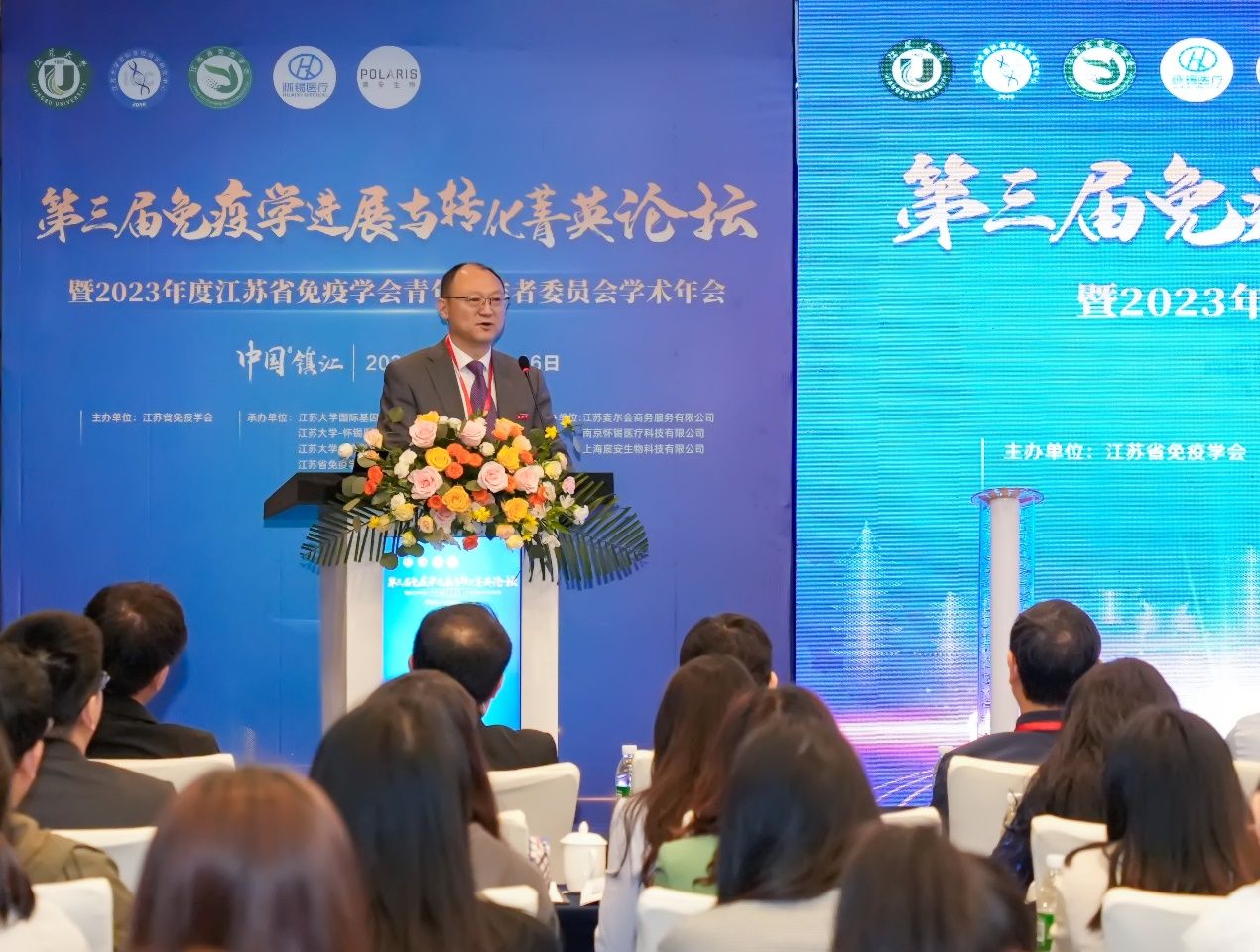 开幕式由江苏省免疫学会副理事长朱一蓓教授主持。江苏省免疫学会理事长许化溪教授、中国免疫学会青年工作者委会副主任委员靳津教授、开云手机站在线登入副校长张济建教授在大会上致辞。开云手机站在线登入—怀锡医疗科技有限公司、开云手机站在线登入—辰安生物科技有限公司校企合作启动。