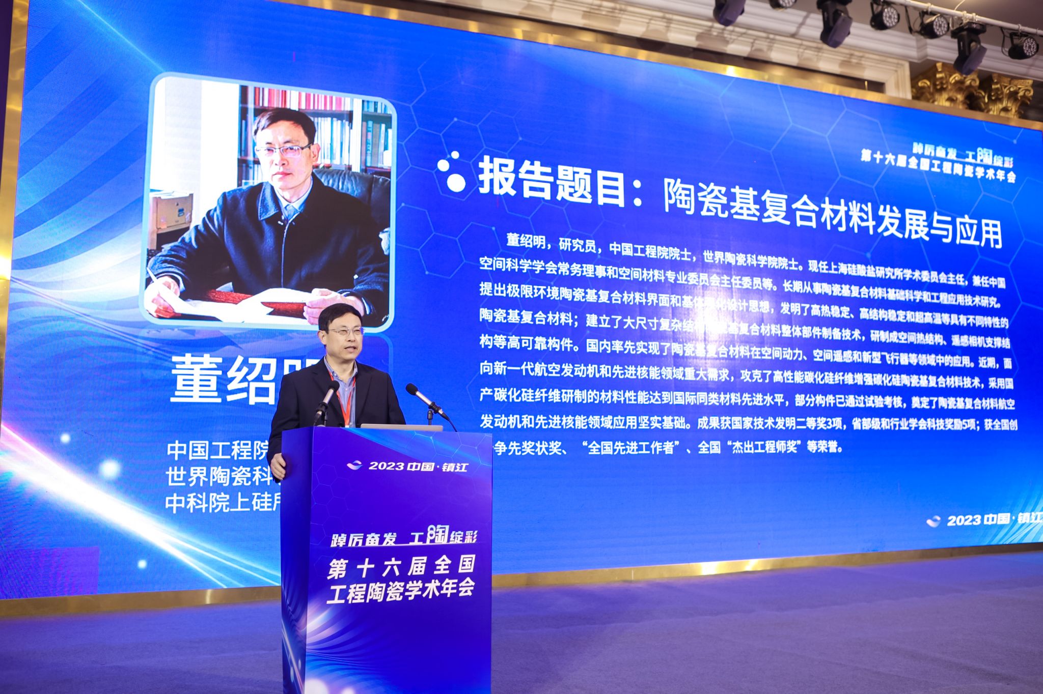 大会报告由肖汉宁和副理事长兼秘书长谢志鹏主持。董绍明,世界陶瓷科学院院士、清华大学教授潘伟,乌克兰工程院外籍院士、宁波工程学院教授杨为佑,开云手机站在线登入教授刘军林分别围绕陶瓷基复合材料发展与应用、半导体设备用关键陶瓷零部件、碳化硅材料研究与应用探索、第三代半导体GaN基发光材料及器件等热点研究方向作大会特邀报告。