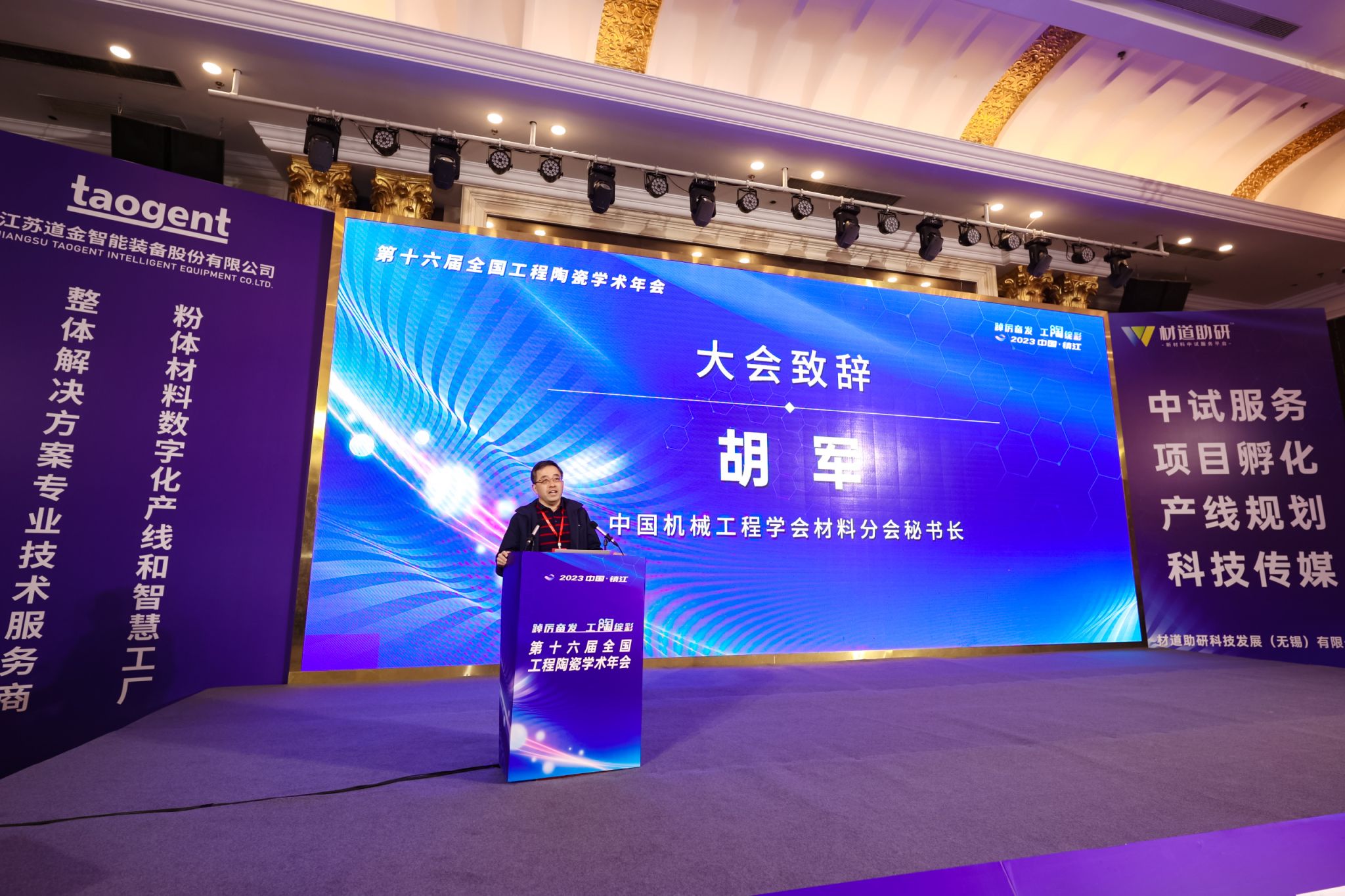 本次年会由中国机械工程学会材料分会、开云手机站在线登入、江苏省硅酸盐学会联合主办,材道助研科技发展(无锡)有限公司承办。4月15日,中国工程院院士、上海硅酸盐研究所教授董绍明,工程陶瓷专业委员会理事长肖汉宁、中国机械工程学会材料分会秘书长胡军、中科院上海高等研究院院长黄政仁、我校副校长赵玉涛等出席开幕式,开幕式由我校材料学院院长乔冠军主持。