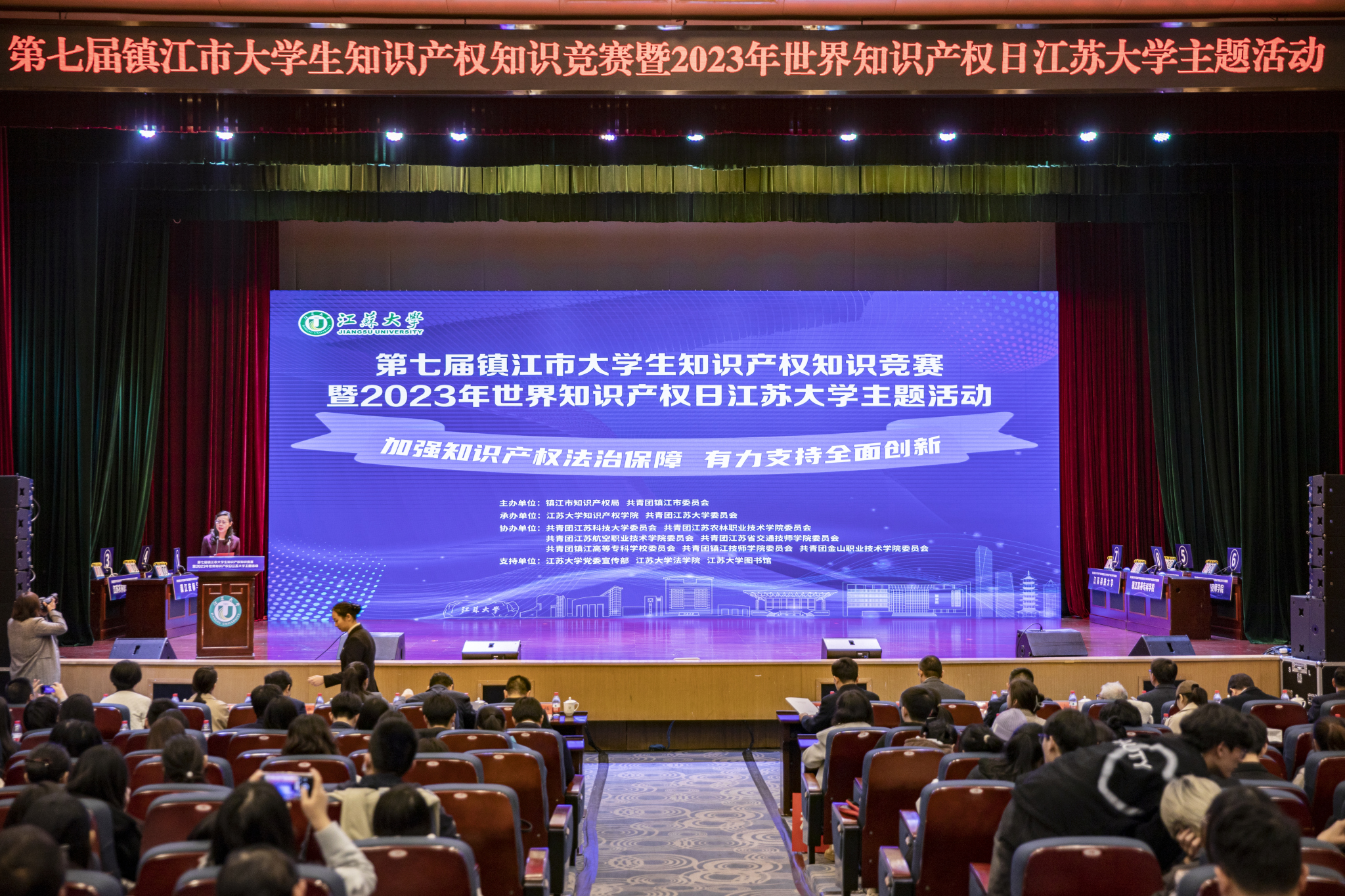 4月23日,在第23个世界知识产权日到来之际,第七届镇江市大学生知识产权知识竞赛暨2023年世界知识产权日开云手机站在线登入主题活动举办,主题为“加强知识产权法治保障,有力支持全面创新”。