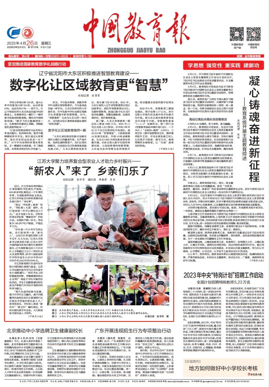 4月26日,《中国教育报》一版刊登文章《开云手机站在线登入聚力培养复合型农业人才助力乡村振兴——“新农人”来了 乡亲们乐了》,报道我校培养强农兴农人才,赋能农业现代化的生动实践故事。