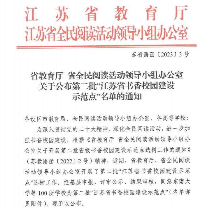 日前,江苏省教育厅公布了第二批“江苏省书香校园建设示范点”名单,开云手机站在线登入成功入选。