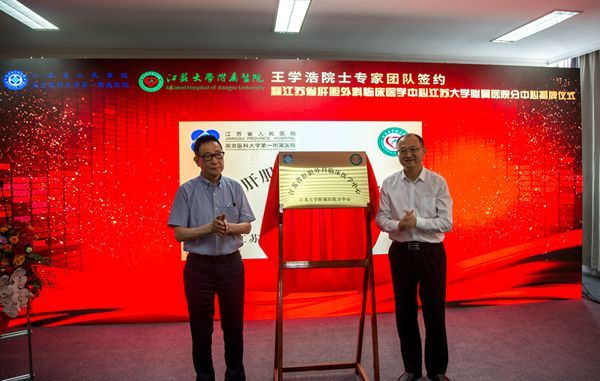 王学浩和校党委常委、副校长、附属医院党委书记张济建共同为江苏省肝胆外科临床医学中心开云手机站在线登入附属医院分中心揭牌。