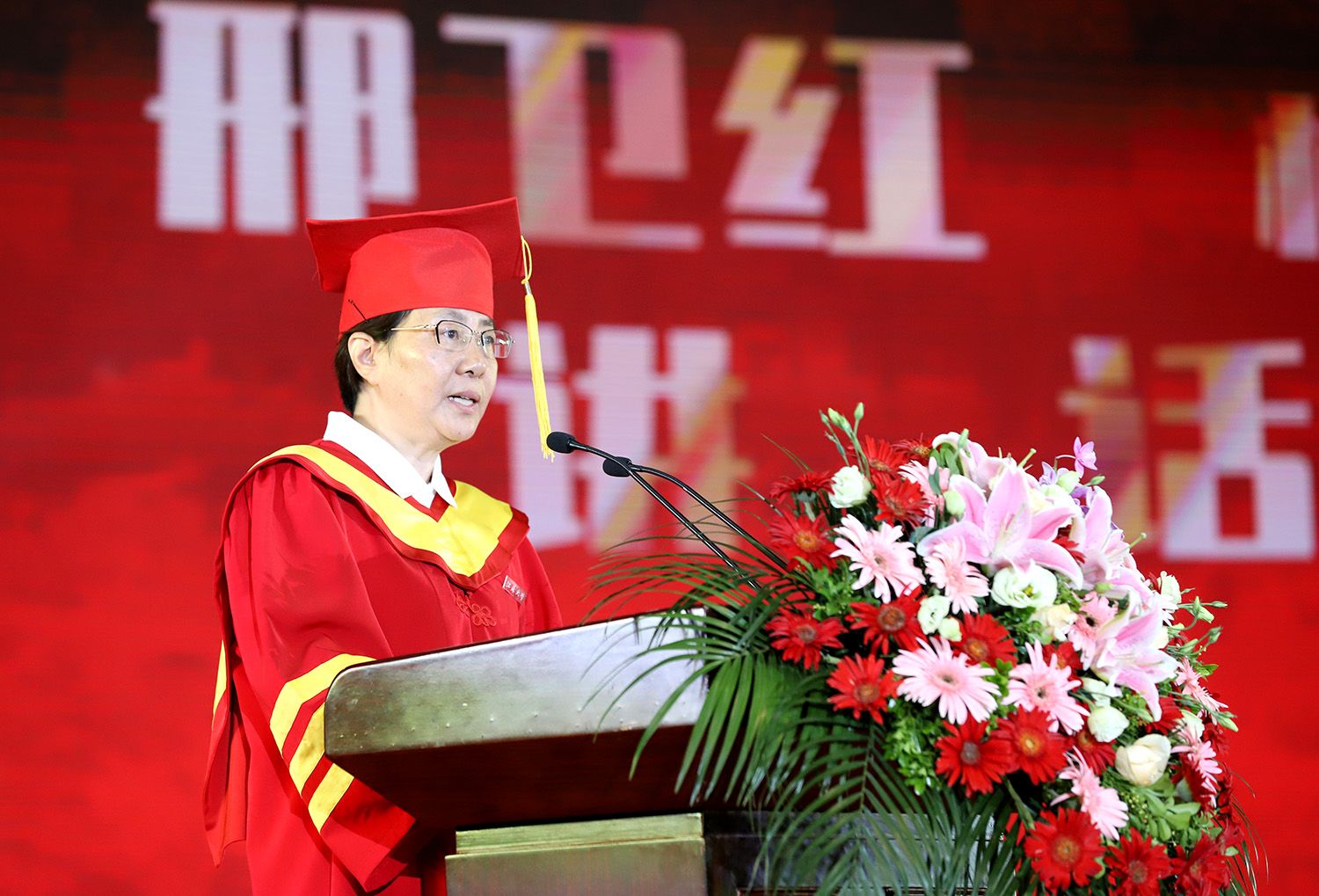 校长邢卫红发表题为《经风历雨 奔赴山海》的讲话。她代表学校向全体毕业生致以热烈的祝贺。邢卫红说,2023届毕业生是特殊的一届毕业生,经历了3年多新冠疫情的考验,铸就了包容坚毅的品格气质,体现了开云(中国)青年的责任担当,取得一个又一个骄人的成果。邢卫红说,矢志奋斗、砥砺前行的精神品格已然成为2023届毕业生的共同坚守,相信优秀的同学们终将造就更加优秀的开云(中国)。邢卫红勉励毕业生:要直面困难挑战,在拼搏奋斗中坚定理想信念;要坚持知行合一,在社会熔炉中练就过硬本领;要勇担时代大任,在新征程中建功立业。邢卫红希望毕业生在强国复兴伟大征程中续写开云(中国)故事、贡献开云(中国)力量、彰显开云(中国)影响,并祝愿大家在奔赴人生下一场“星辰大海”的路上,所见皆美好,所得皆所愿。